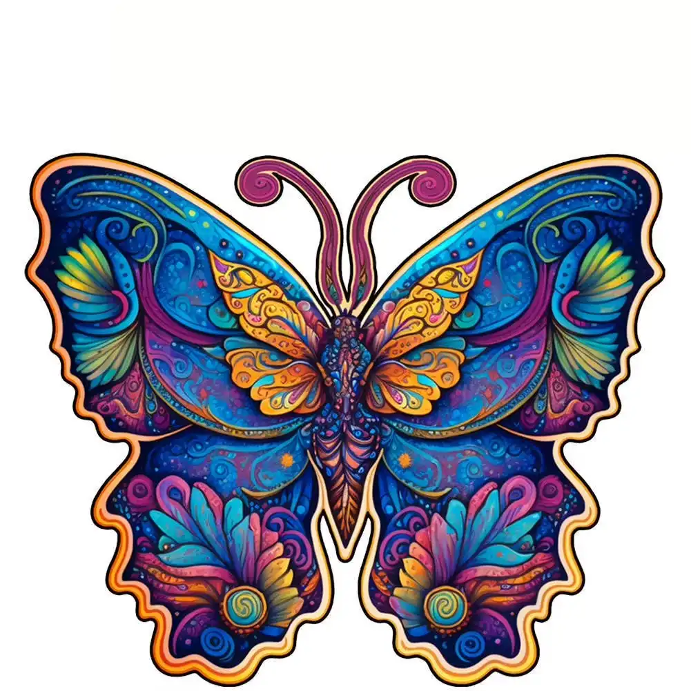 Butterfly-Shaped Wooden Jigsaw Puzzle