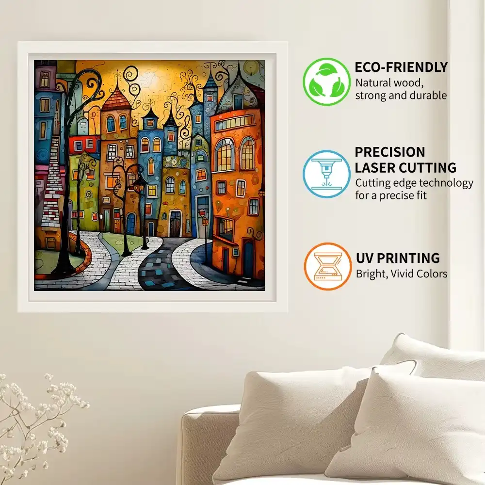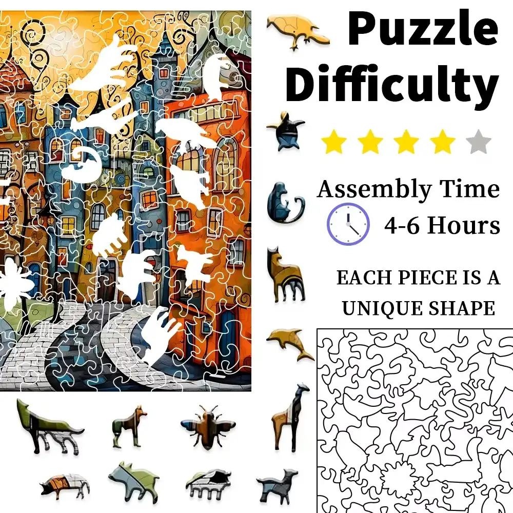 Dive into the whimsical world of the Cartoon City Wooden Jigsaw Puzzle! This vibrant painting of a bustling city street, complete with charming buildings and lush trees, comes to life as you piece together each colorful section. Crafted from high-quality wood, this puzzle not only provides hours of engaging fun but also enhances fine motor skills and cognitive development. Perfect for family game nights or as a delightful gift, this puzzle invites you to explore the joy of creativity and imagination. Bring home the magic of city life today!