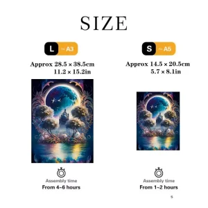 | Size:L(A3) | Approx 28×28 cm (11×11 inches) – 220ο½260 pcs, assembly time 6-8 hours. |