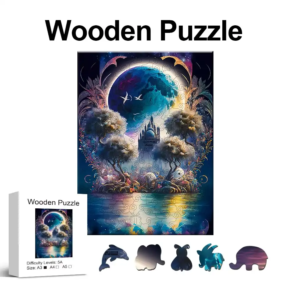Castle Under the Moon Wooden Jigsaw Puzzle