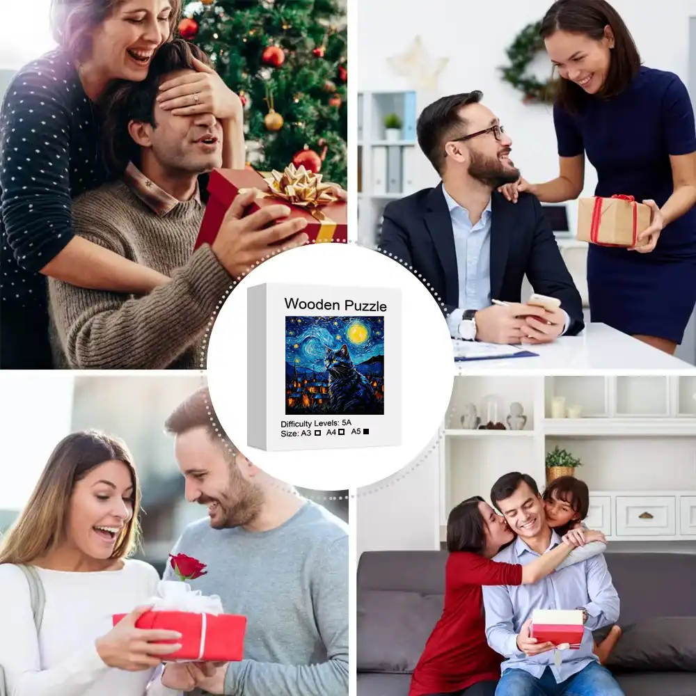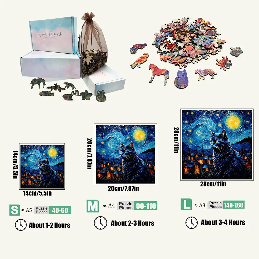 Cat And Starry Sky Wooden Jigsaw Puzzle