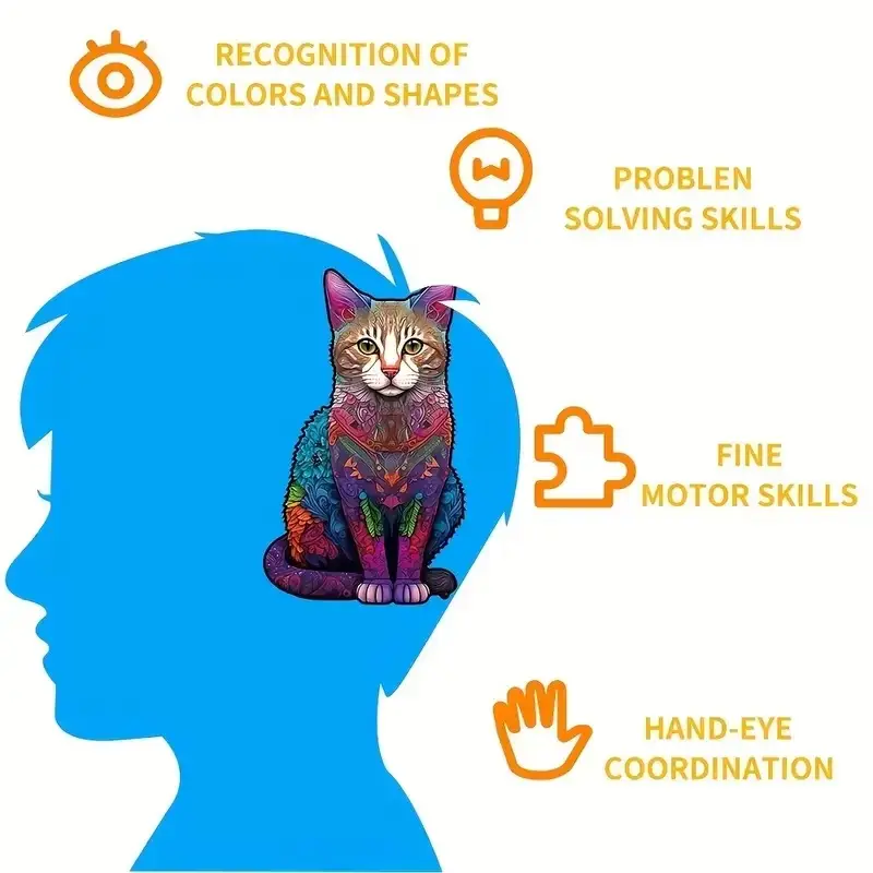Unleash your creativity and enjoy hours of fun with our Cat Shaped Wooden Jigsaw Puzzle! This vibrant and colorful puzzle not only adds a playful touch to your decor but also provides a delightful challenge for puzzle enthusiasts of all ages. Made from high-quality wood, each piece fits together seamlessly, ensuring a satisfying experience as you bring this charming feline to life. Perfect for family game nights or as a unique gift for cat lovers, this puzzle is sure to spark joy and laughter in every household. Get yours today and let the puzzling adventure begin!