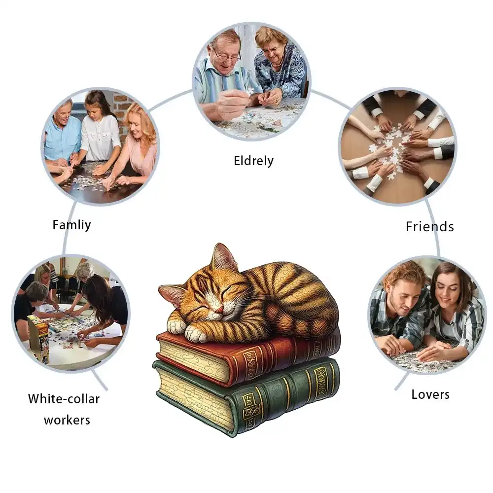 Cat Sleeps On The Book Wooden Jigsaw Puzzle