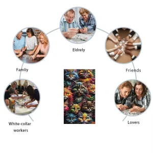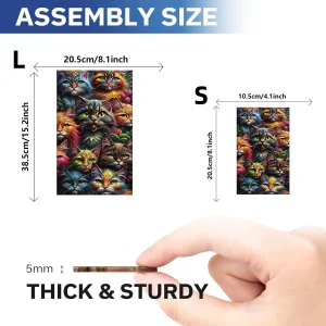 Dive into a world of whimsy with our Cat Themed Wooden Jigsaw Puzzle, featuring an enchanting painting of cats with vibrant, colorful eyes. This delightful puzzle not only offers hours of engaging fun but also transforms your space with its charming artwork. Crafted from high-quality wood, each piece fits together seamlessly, making it perfect for cat lovers and puzzle enthusiasts alike. Bring home this unique piece today and let the playful spirit of these feline friends brighten your day!