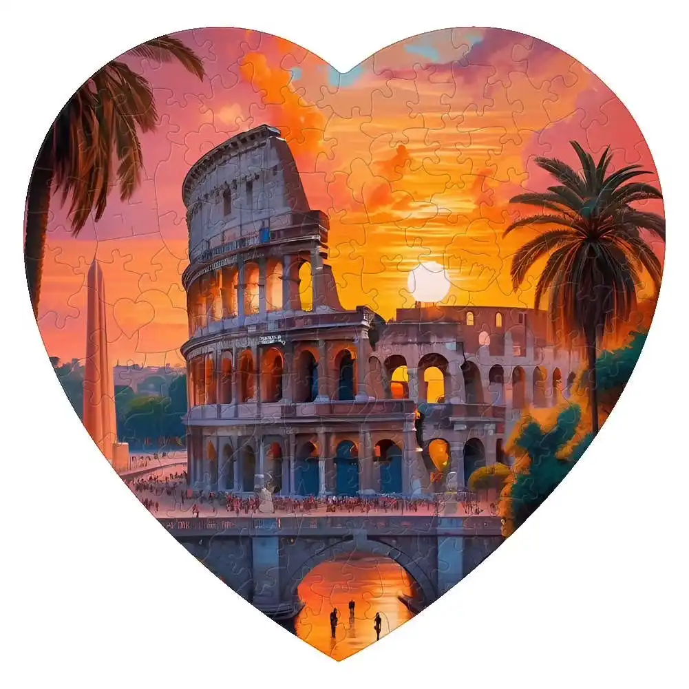 Coliseum Heart Shaped Wooden Jigsaw Puzzle