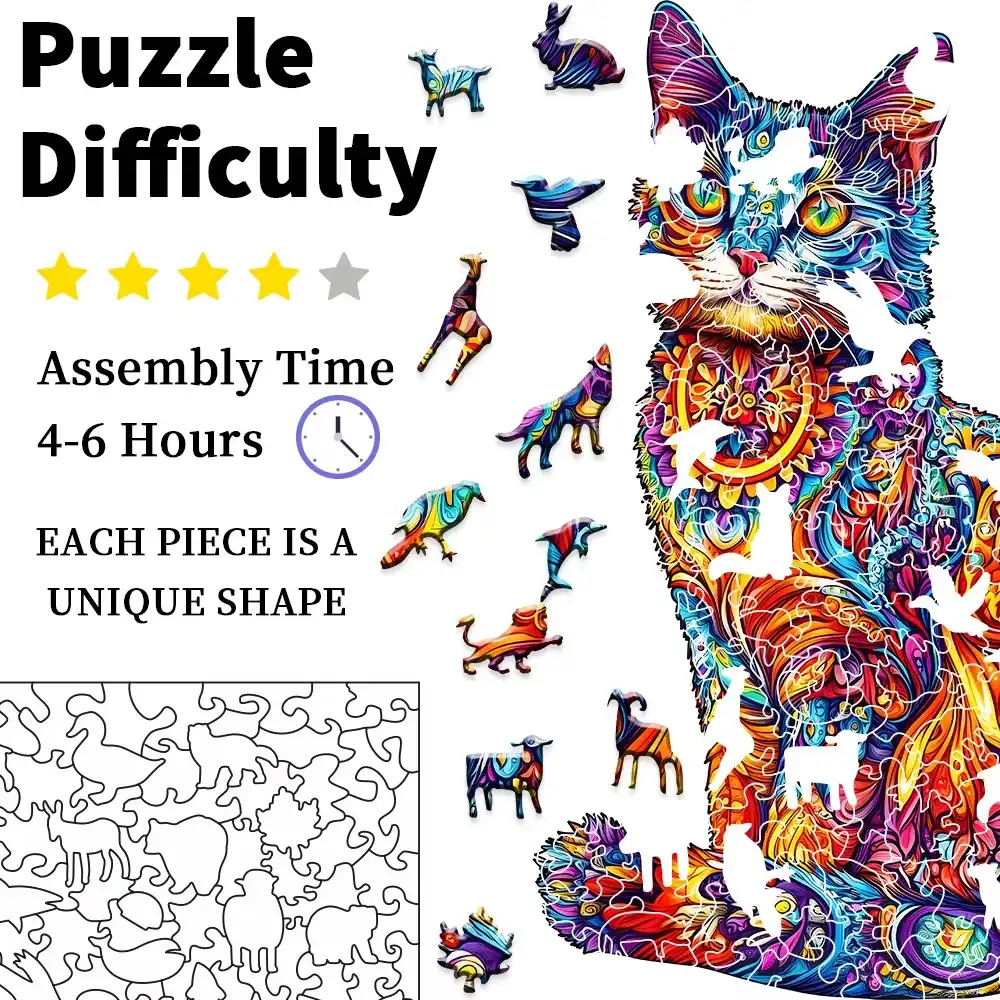 Dive into a world of fun and creativity with our Colored Cat Wooden Jigsaw Puzzle! This charming puzzle features beautifully crafted wooden pieces that come together to form an adorable cat design, perfect for cat lovers of all ages. Not only does it provide hours of entertainment, but it also helps improve problem-solving skills and hand-eye coordination. Made from high-quality, eco-friendly materials, this puzzle is durable and safe for everyone. Bring home this delightful puzzle and enjoy a purr-fectly good time!