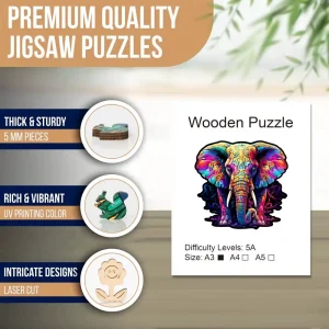 Brighten up your space with our Colorful Elephant Wooden Jigsaw Puzzle that brings joy and creativity to any project! This colorful design captures the playful spirit of elephants.