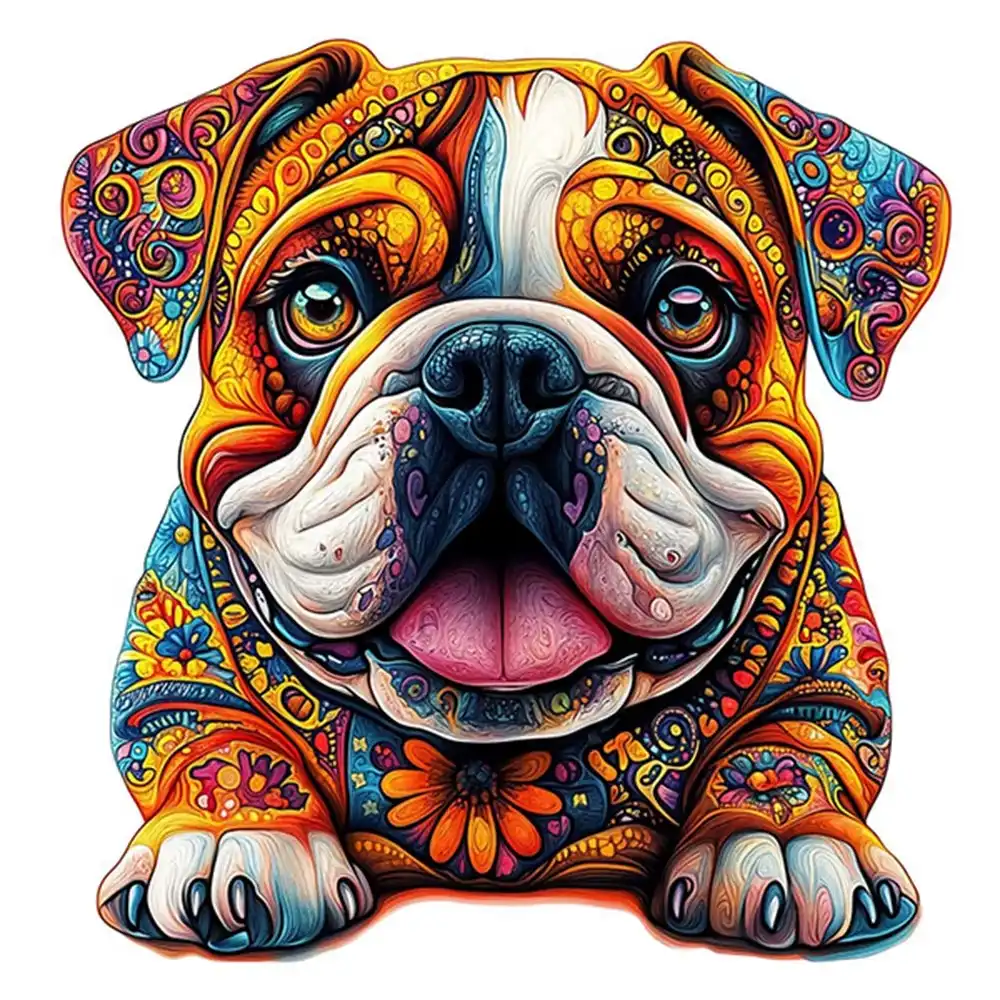 Colorful Happy Dog Wooden Jigsaw Puzzle