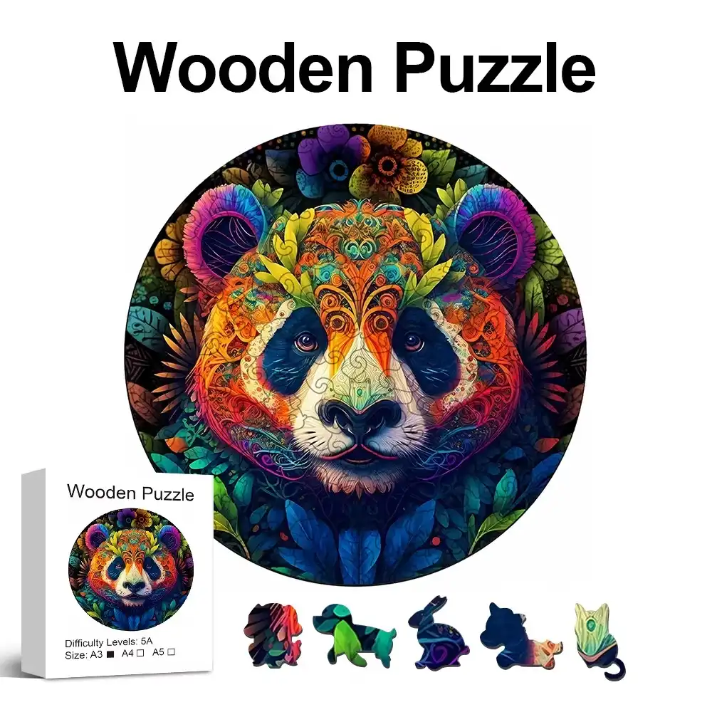 Colorful Panda Wooden Jigsaw Puzzle