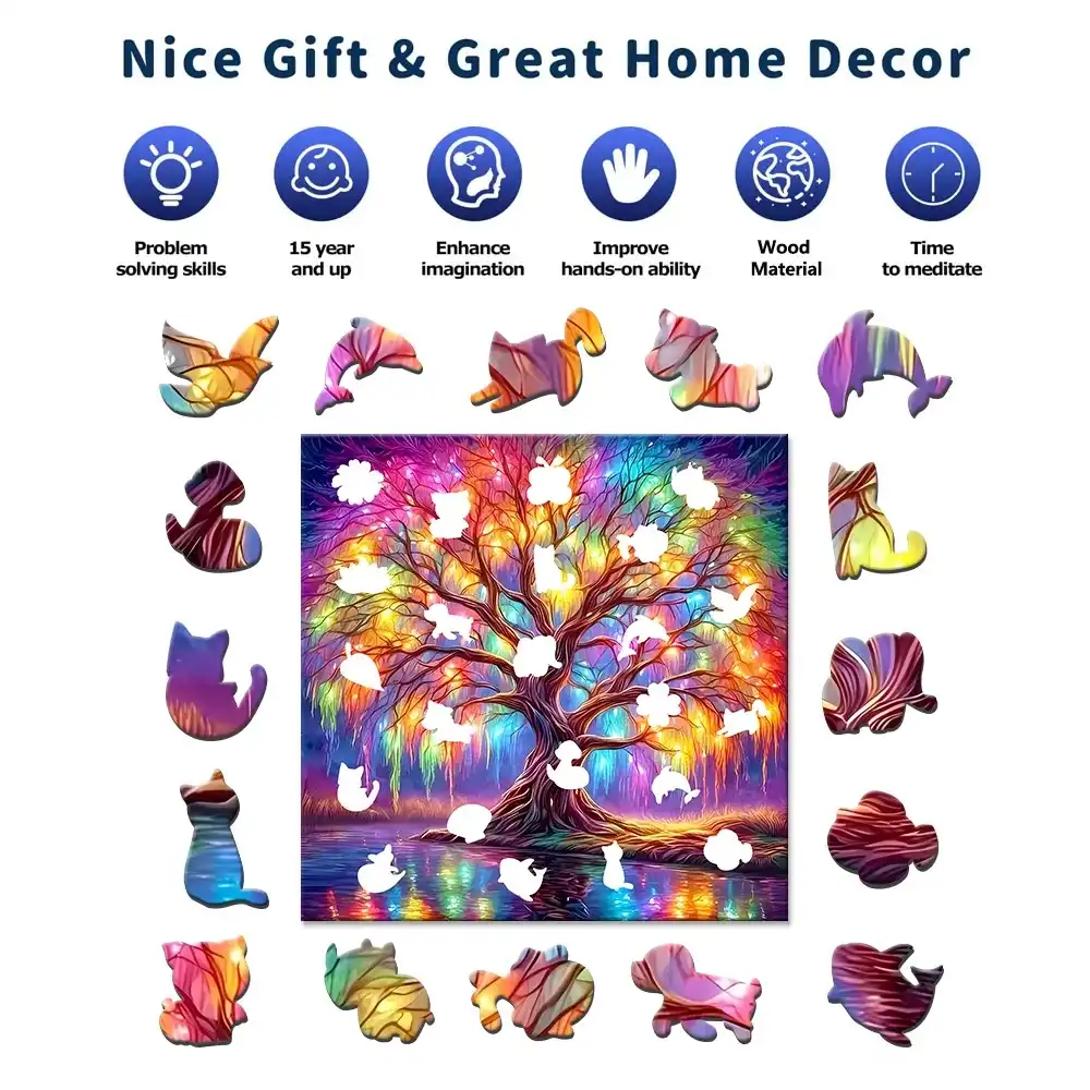 Colorful Shining Tree Wooden Jigsaw Puzzle