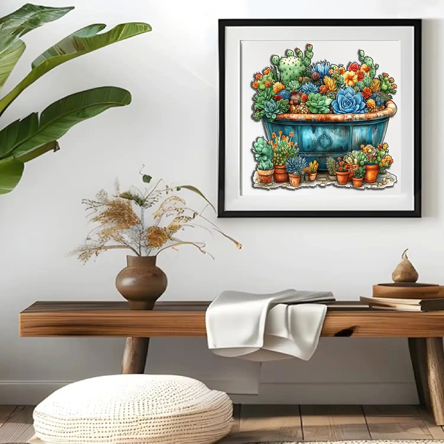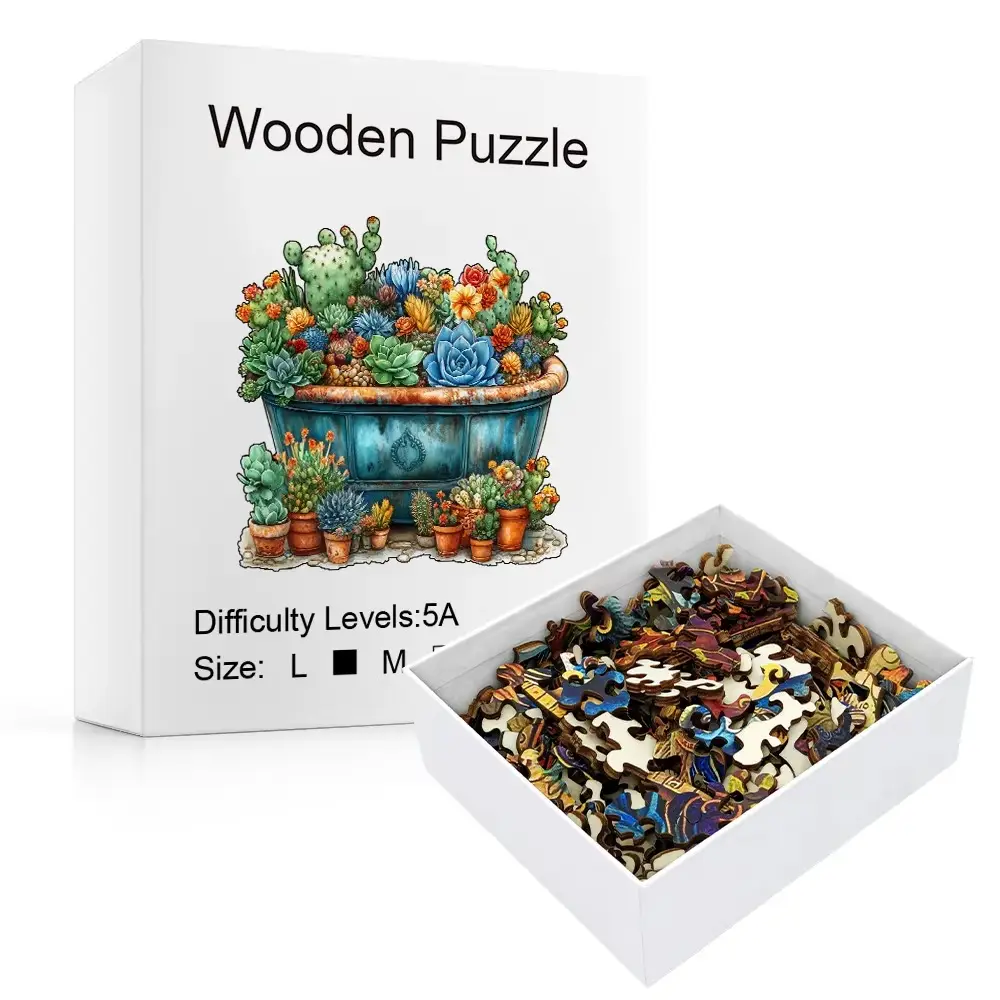 Dive into a world of creativity and relaxation with our Colorful Succulent Plants Wooden Jigsaw Puzzle! Featuring a charming illustration of a blue tub brimming with vibrant cactus plants, this puzzle is perfect for both beginners and seasoned puzzlers. Each piece is crafted from high-quality wood, ensuring durability and a satisfying fit. As you piece together this delightful scene, enjoy the calming benefits of mindfulness and the joy of completing a beautiful work of art. Bring home this puzzle today and transform your downtime into a colorful adventure!