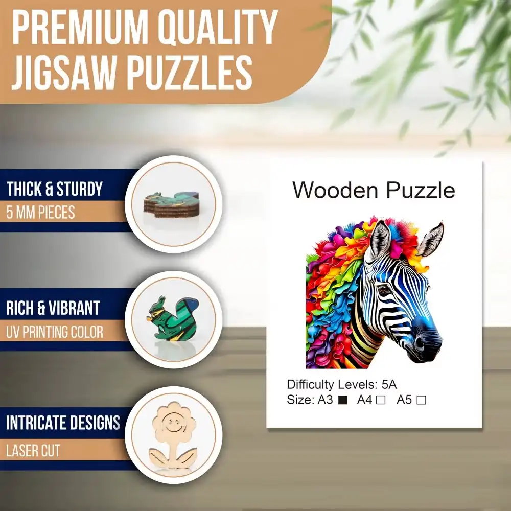 Colorful Zebra Wooden Jigsaw Puzzle