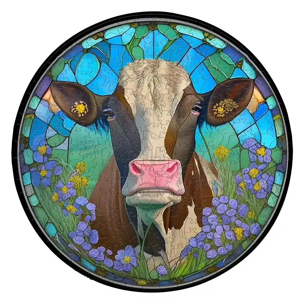Cow Stained Glass Wooden Jigsaw Puzzle