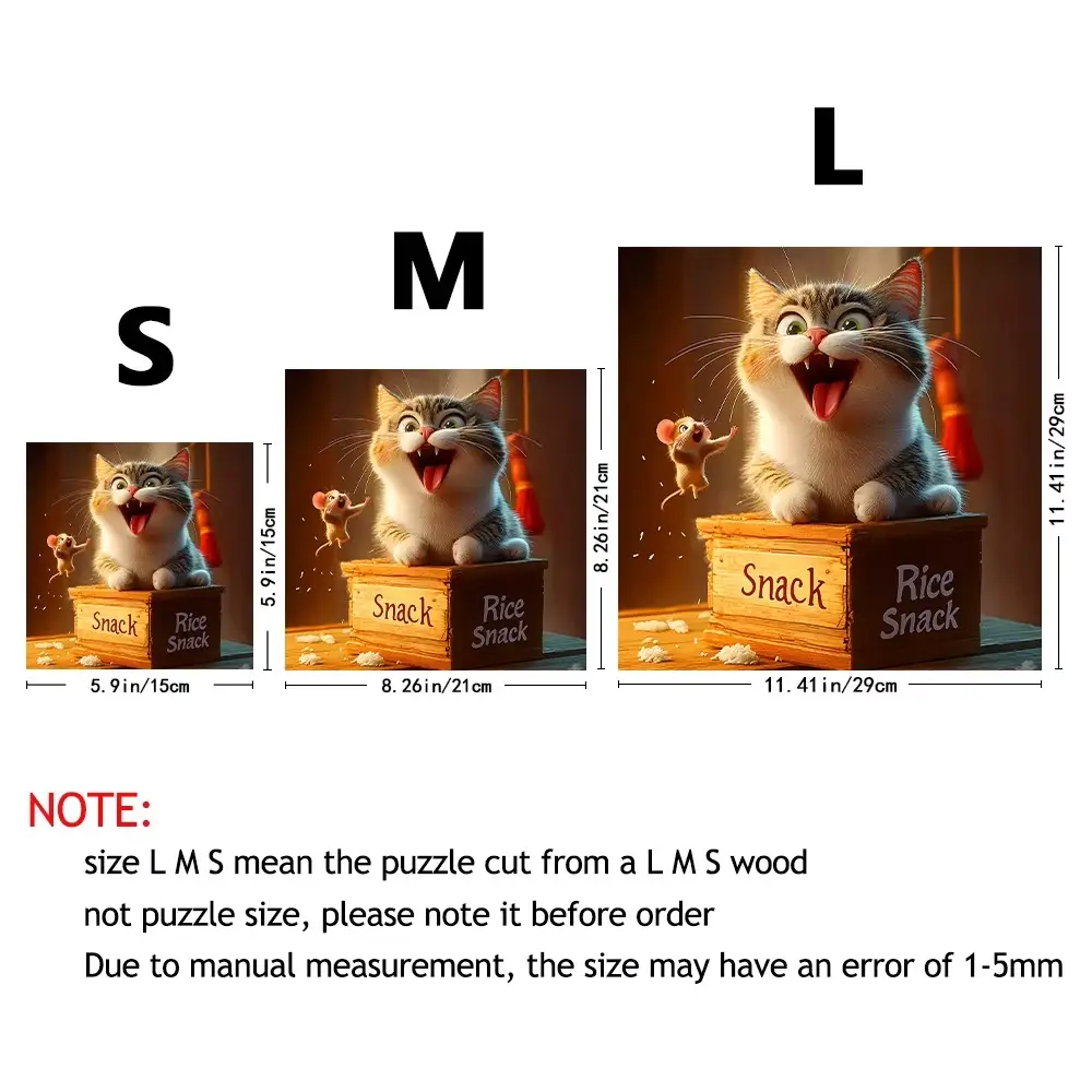 Unleash your creativity and enjoy hours of fun with our Cute Cat Wooden Jigsaw Puzzle! Featuring an adorable cat perched atop a box with a curious mouse peeking out, this puzzle is perfect for cat lovers and puzzle enthusiasts alike. Made from high-quality, eco-friendly wood, each piece fits together seamlessly, providing a satisfying challenge for all ages. Not only does it make for a delightful pastime, but it also serves as a charming decor piece once completed. Bring home this whimsical puzzle and let the playful spirit of our feline friend brighten your day!