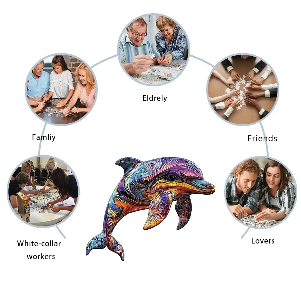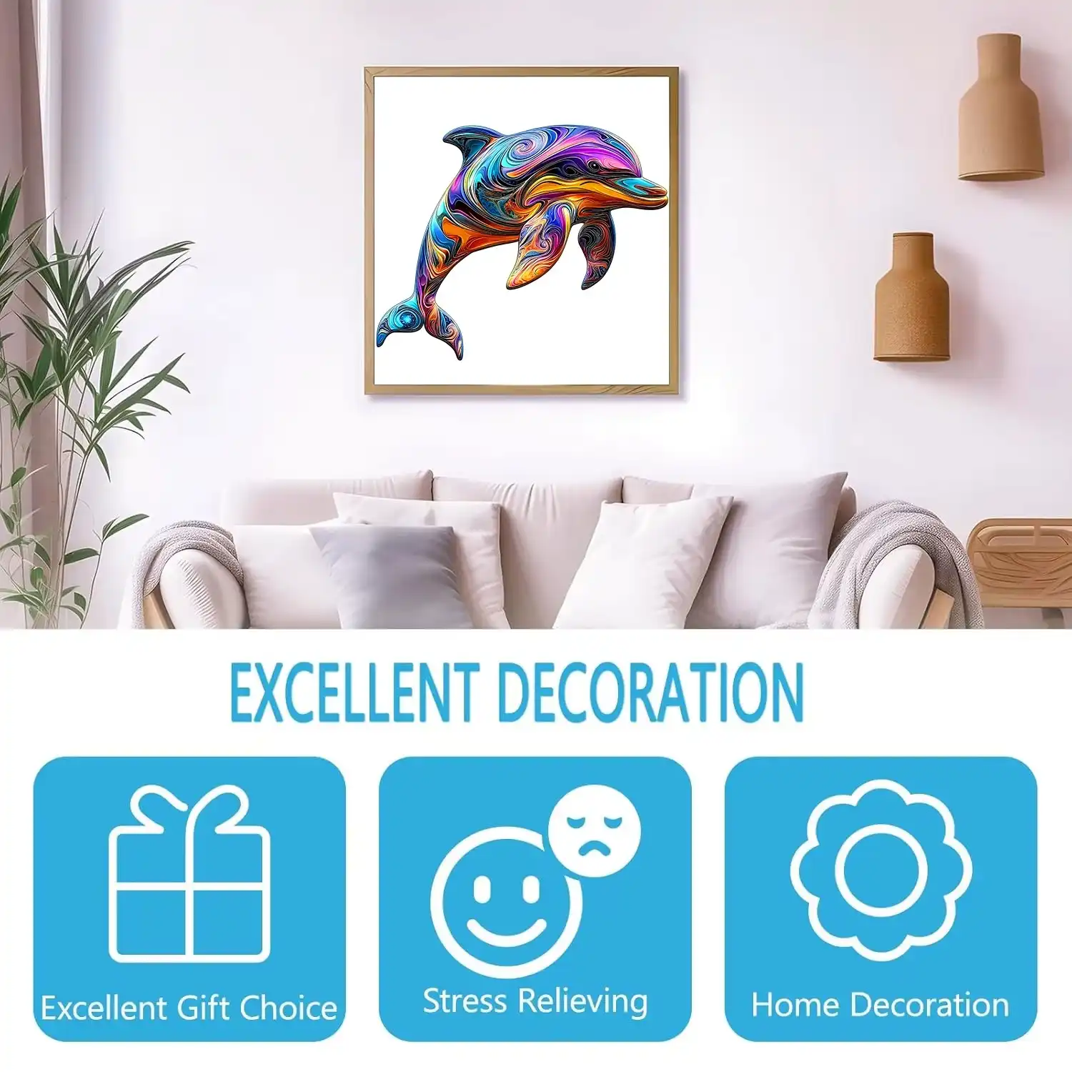 Dive into a world of creativity with our Dolphin Wooden Jigsaw Puzzle! Featuring a stunning dolphin adorned in vibrant, swirling colors, this puzzle is not just a fun activity but a beautiful piece of art. Perfect for both kids and adults, it encourages problem-solving skills while providing hours of entertainment. Made from high-quality wood, each piece fits together seamlessly, ensuring a satisfying experience. Bring home this delightful puzzle and let the colorful dolphin inspire your imagination!