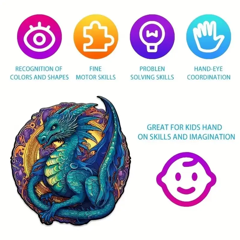 Unleash your inner adventurer with the Dragon King Wooden Jigsaw Puzzle! This beautifully crafted wooden puzzle features an intricately designed dragon, making it a stunning centerpiece for any room. Each piece is made from high-quality wood, ensuring durability and a satisfying tactile experience as you assemble the majestic creature. Perfect for puzzle enthusiasts and dragon lovers alike, this puzzle not only provides hours of entertainment but also serves as a unique decorative item once completed. Dive into the world of fantasy and challenge yourself with the Dragon King today!