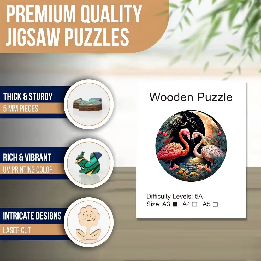 Dive into a serene night with our Flamingo Themed Wooden Jigsaw Puzzle, featuring two elegant flamingos basking in the moonlight. Crafted from high-quality wood, this puzzle not only offers a delightful challenge but also serves as a stunning piece of art for your home. Perfect for family bonding or a relaxing solo activity, it encourages mindfulness while enhancing your decor. Bring a touch of tropical charm to your puzzle collection and enjoy the soothing vibes of this enchanting scene!