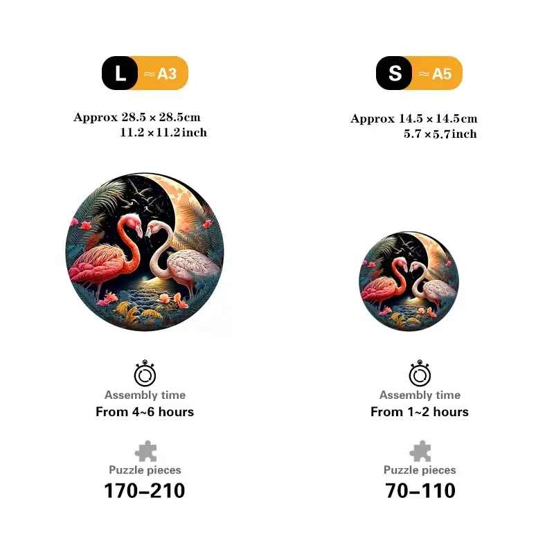 | Size:L(A3) | Approx 28×28 cm (11×11 inches) – 220~260 pcs, assembly time 6-8 hours. |