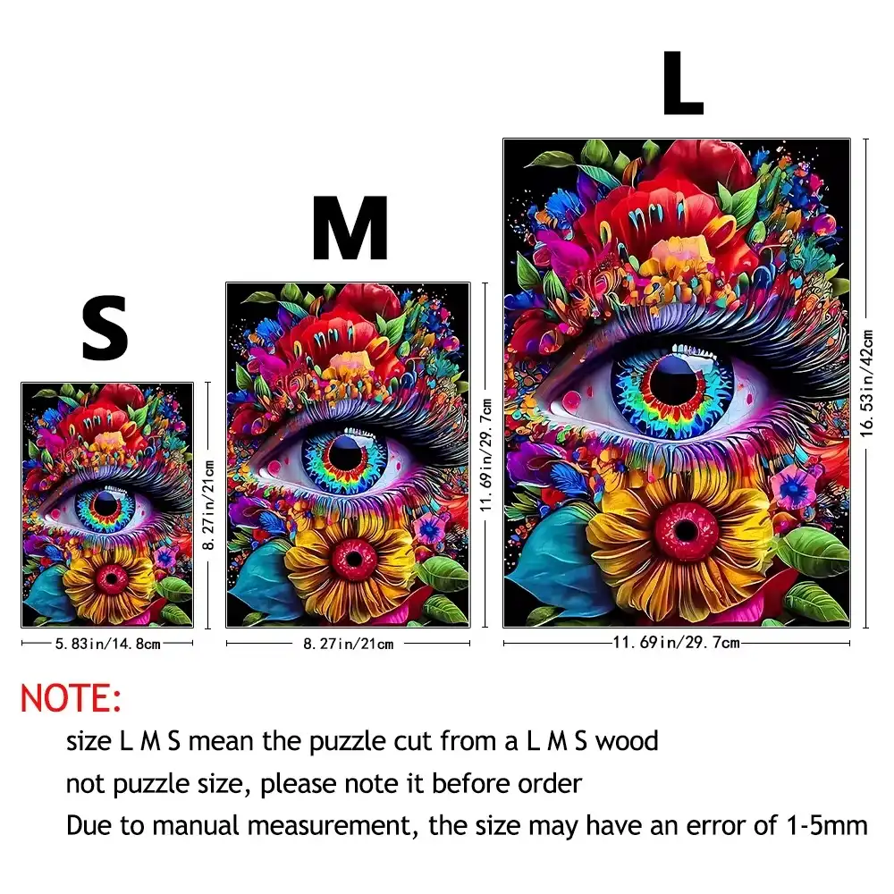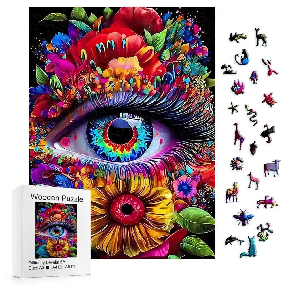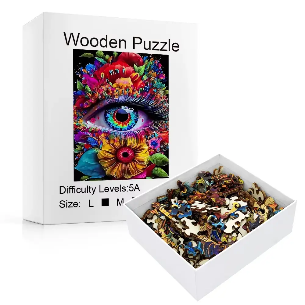 Dive into a world of color and creativity with our Flower Eye Wooden Jigsaw Puzzle! This stunning puzzle features a vibrant eye surrounded by a beautiful array of flowers, making it a perfect blend of art and challenge. Crafted from high-quality wood, each piece fits together seamlessly, providing a satisfying experience for puzzle enthusiasts of all ages. Not only does it offer hours of entertainment, but it also serves as a striking piece of decor once completed. Bring a splash of color to your home and enjoy the therapeutic benefits of puzzling with this unique design!