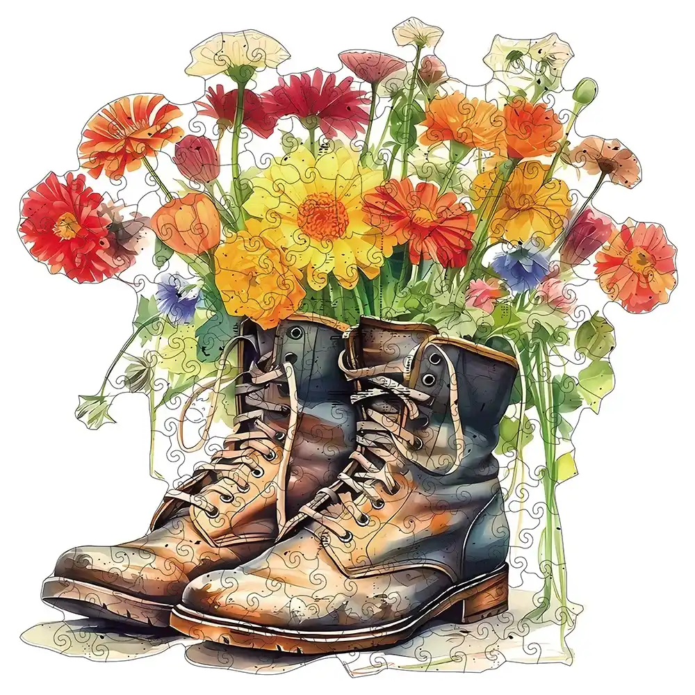 Flowers And Shoes Wooden Jigsaw Puzzle