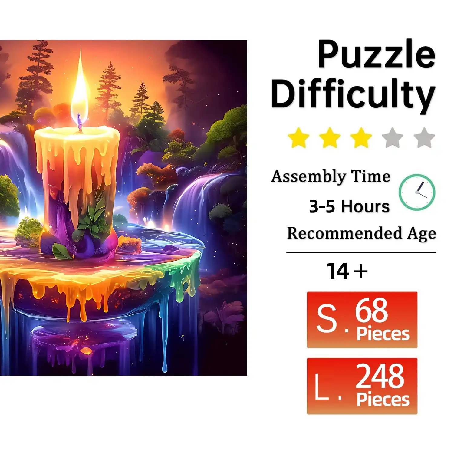 Illuminate your space with the enchanting Forest Candle Wooden Jigsaw Puzzle, featuring a stunning design of a candle with vibrant rainbow drips. This unique piece not only serves as a delightful decor item but also offers a fun and engaging puzzle experience. Perfect for cozy nights in or as a thoughtful gift, it combines artistry and playfulness, making it a must-have for candle lovers and puzzle enthusiasts alike. Light up your creativity and bring a splash of color to your home!