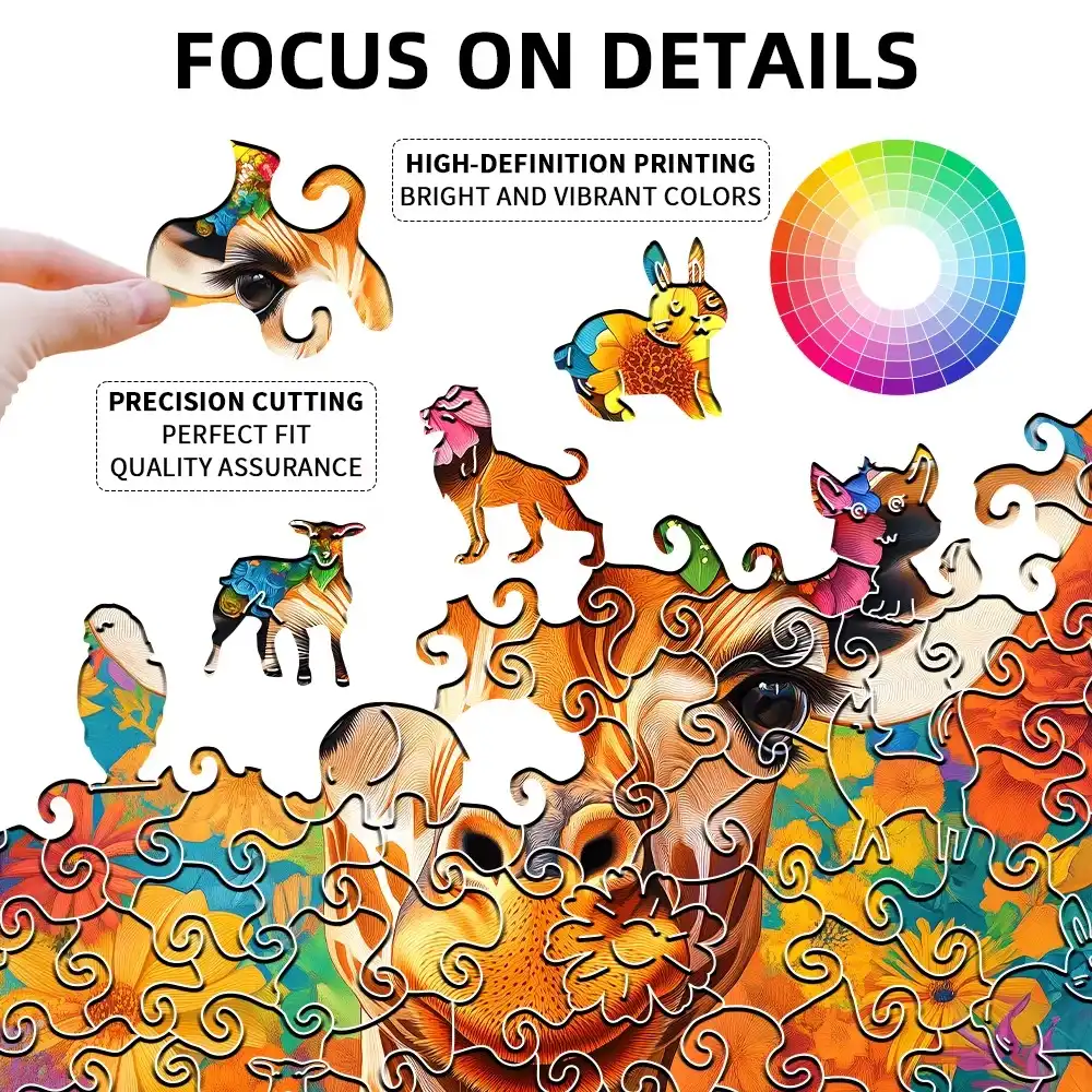 Dive into a world of creativity and fun with our Giraffe Floral Art Wooden Jigsaw Puzzle! Featuring a charming giraffe adorned with vibrant flowers on its head, this puzzle is perfect for both kids and adults. Made from high-quality, eco-friendly wood, each piece fits together seamlessly, providing a satisfying challenge that enhances focus and fine motor skills. Whether you’re looking for a delightful gift or a relaxing activity for yourself, this whimsical puzzle will brighten your day and add a touch of nature to your home decor. Get ready to piece together joy!