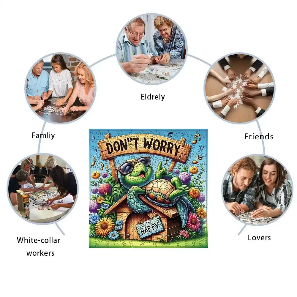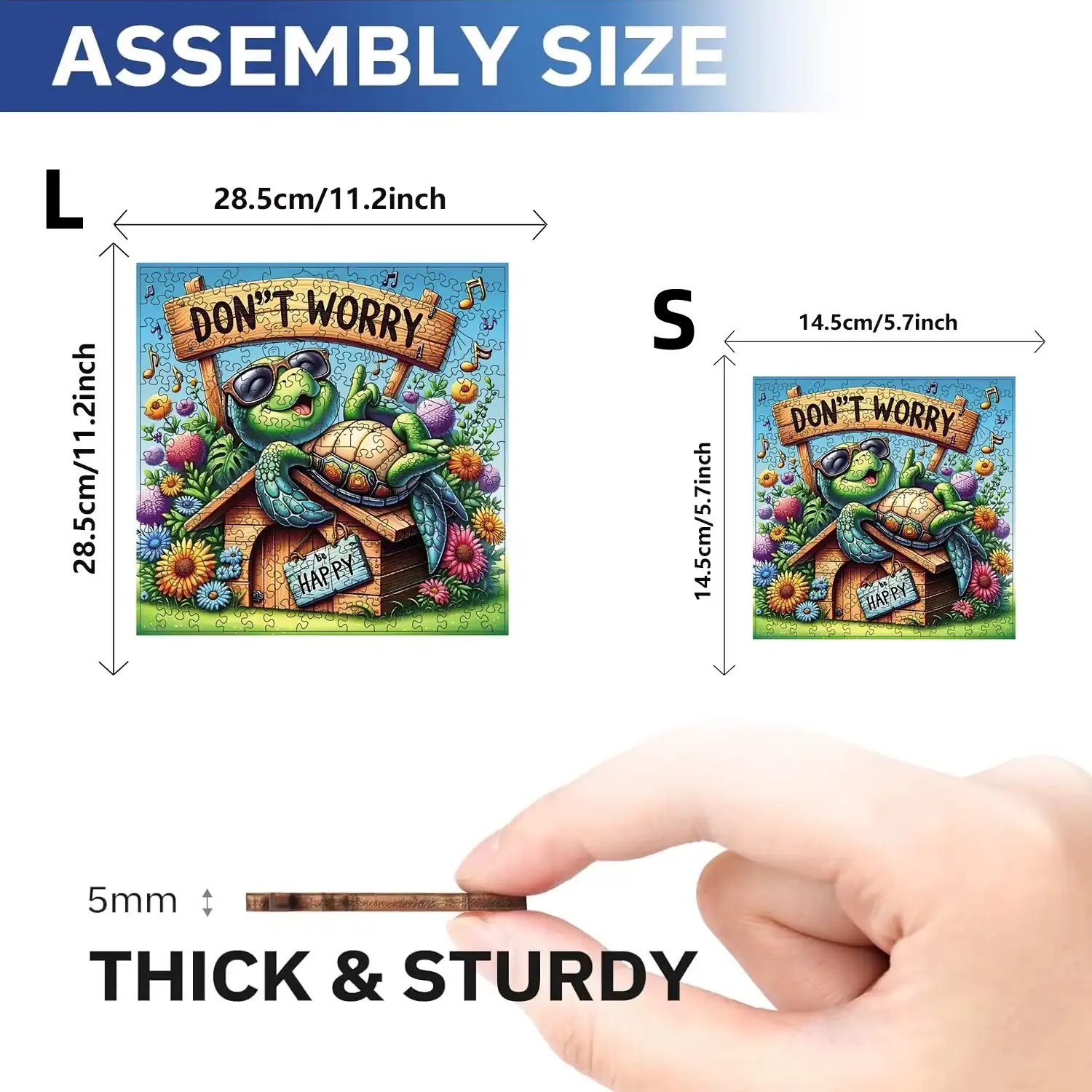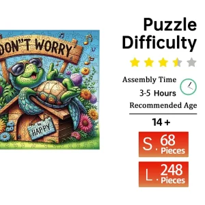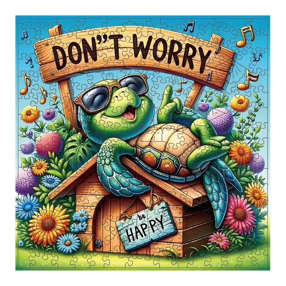 Discover the joy of relaxation with the Happy Turtle Wooden Jigsaw Puzzle, featuring an adorable turtle perched atop a charming house, accompanied by the uplifting phrase “Don’t Worry.” Crafted from high-quality, eco-friendly wood, this puzzle not only provides hours of engaging entertainment but also serves as a delightful piece of decor once completed. Perfect for puzzle enthusiasts of all ages, it encourages mindfulness and creativity while promoting a positive mindset. Bring home this whimsical puzzle today and let the happy turtle remind you to embrace life’s simple pleasures.