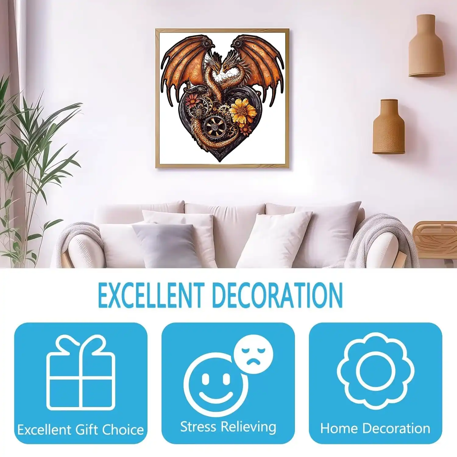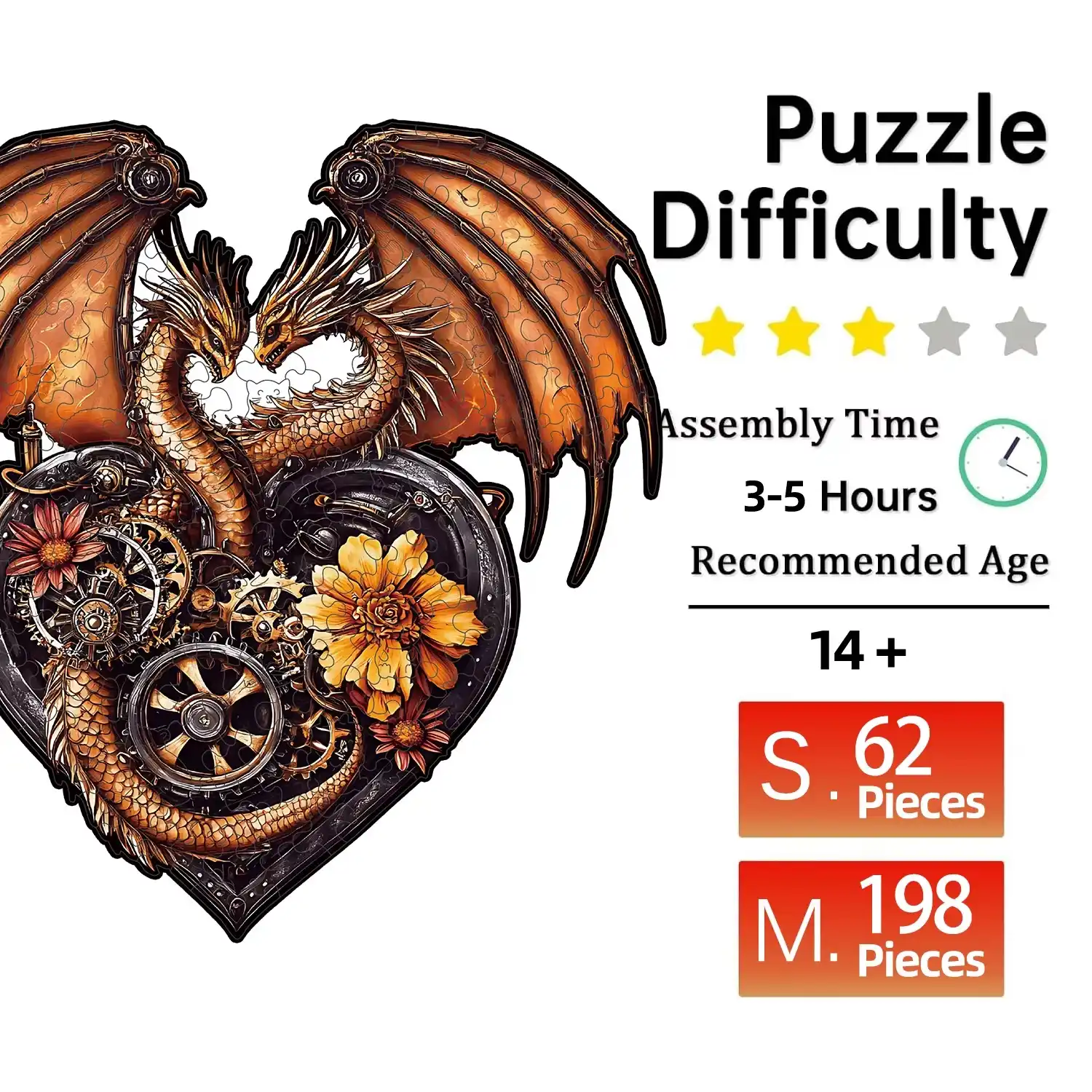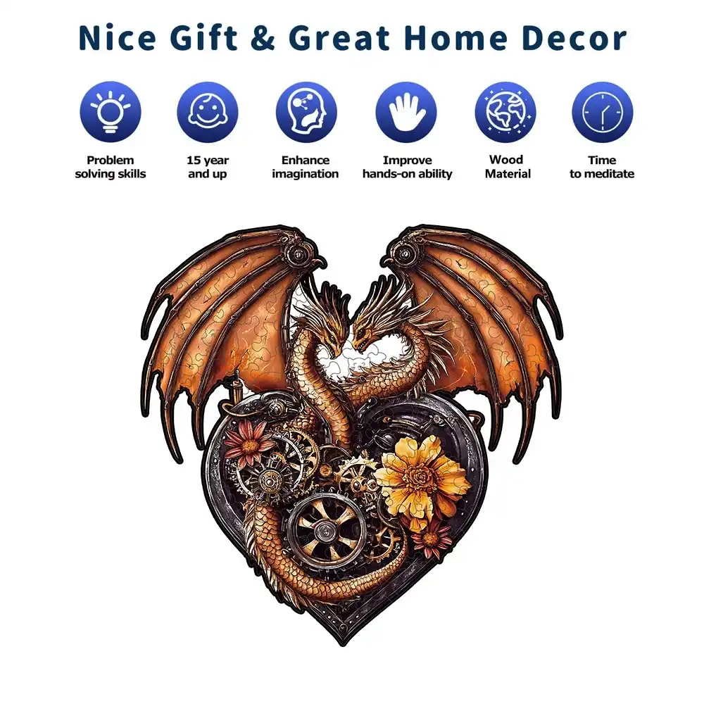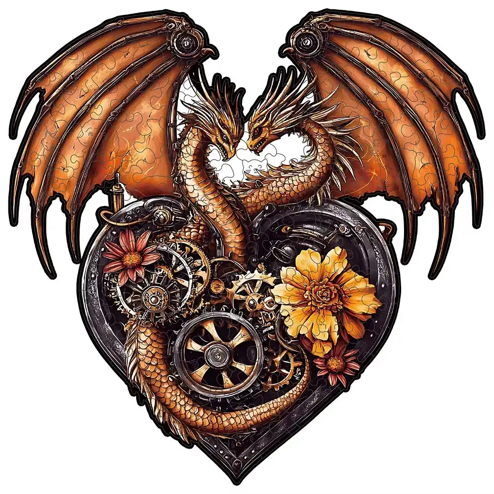 Heart-Shaped Dragon Wooden Jigsaw Puzzle
