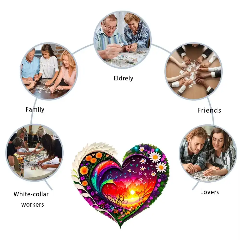 Heart-Shaped Flowers Wooden Jigsaw Puzzle