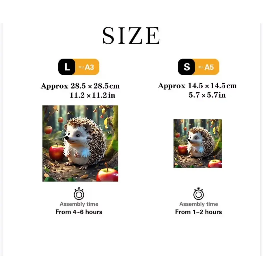 | Size:M(A4) | Approx 20×20 cm (8×8 inches) – 160~200 pcs, assembly time 4-6 hours. |