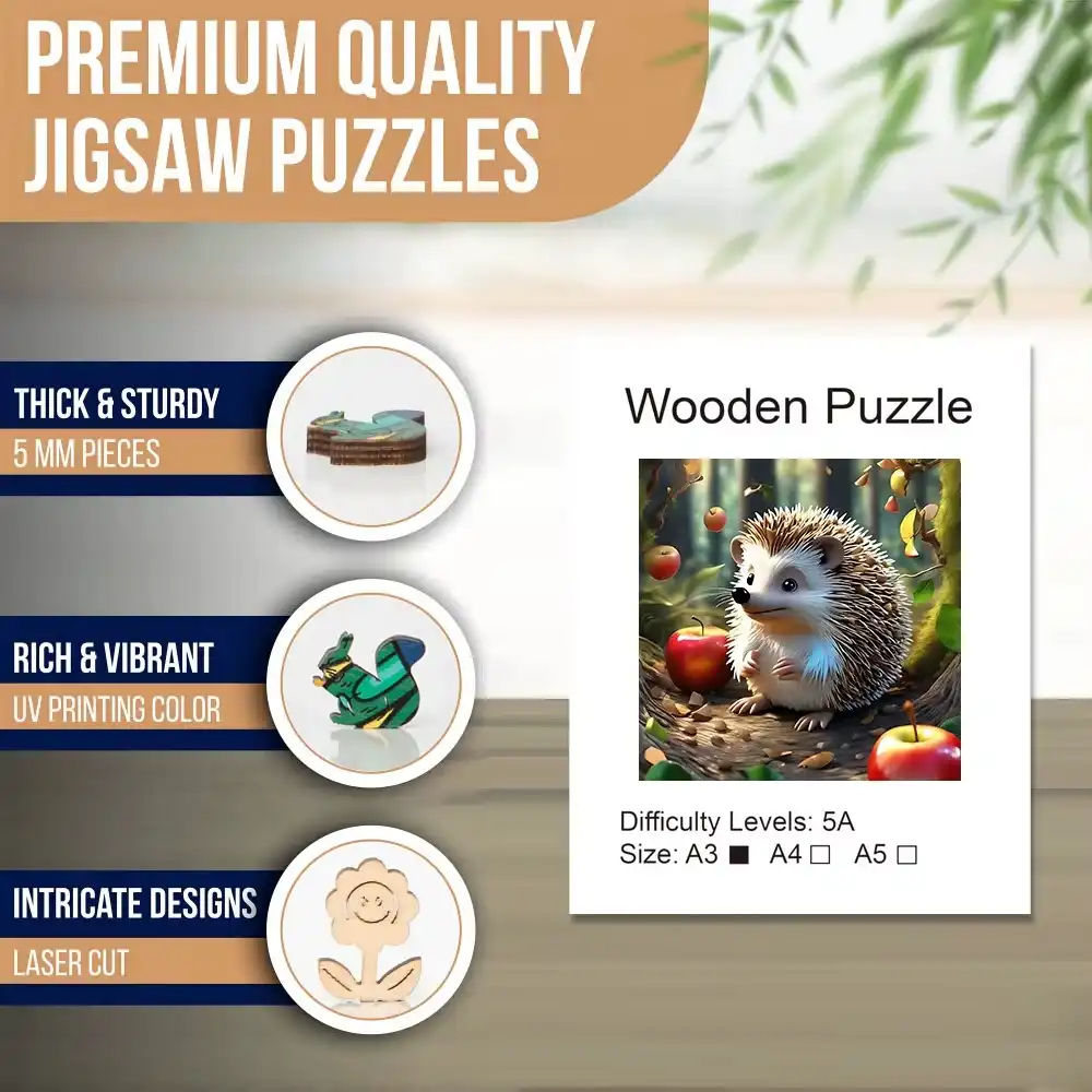 Discover the charm of our Hedgehog Wooden Jigsaw Puzzle, a delightful addition to any puzzle collection. Crafted from high-quality, eco-friendly wood, this intricately designed puzzle features a whimsical hedgehog perched by the tree, inviting both children and adults to engage in hours of fun and creativity. Each piece fits snugly, ensuring a satisfying assembly experience while promoting fine motor skills and cognitive development. Perfect as a gift or a family activity, this puzzle not only entertains but also enhances problem-solving abilities. Bring home the joy of puzzling with our Hedgehog Wooden Jigsaw Puzzle today!