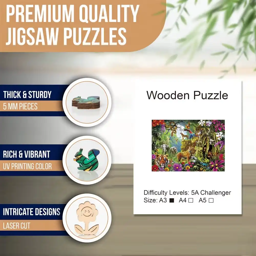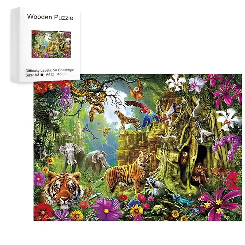 Discover the enchanting world of the Jungle Life Wooden Jigsaw Puzzle, where vibrant colors and intricate designs bring a lively jungle scene to life. This beautifully crafted puzzle features a variety of exotic animals, making it an engaging activity for both children and adults. Made from high-quality, eco-friendly wood, each piece fits together seamlessly, ensuring durability and a satisfying assembly experience. Perfect for family bonding or as a thoughtful gift, this puzzle not only entertains but also enhances cognitive skills and promotes patience. Dive into the adventure of the jungle and create lasting memories with every piece you connect.