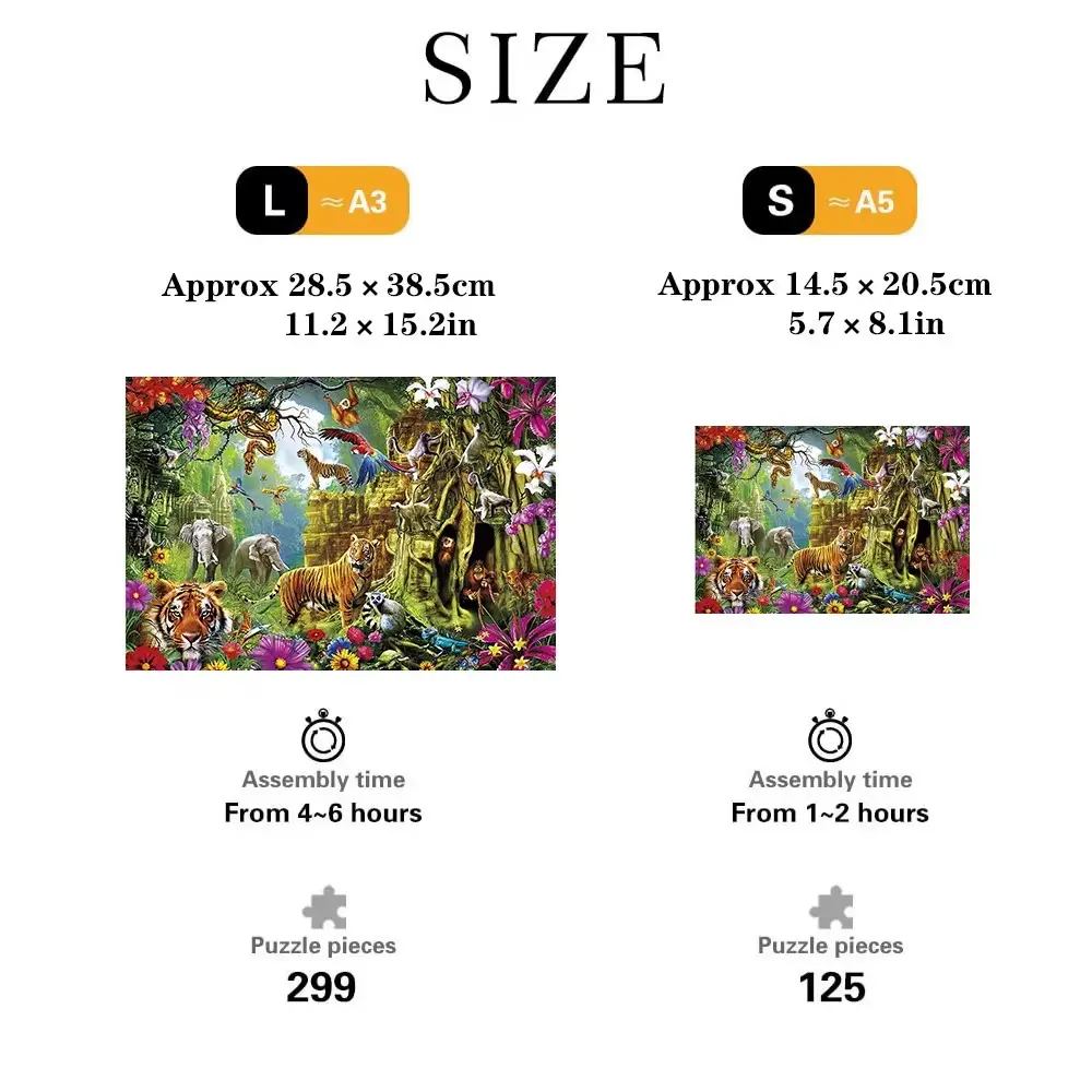 | Size:L(A3) | Approx 28×28 cm (11×11 inches) – 220~260 pcs, assembly time 6-8 hours. |