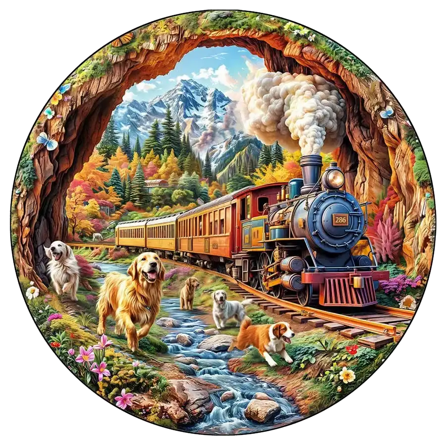 Landscape And Train Wooden Jigsaw Puzzle