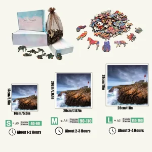 Dive into the serene beauty of coastal landscapes with our Lighthous On The Cliff Wooden Jigsaw Puzzle. This stunning puzzle features a picturesque lighthouse perched on a rocky cliff, overlooking the vast ocean, inviting you to piece together a moment of tranquility. Crafted from high-quality wood, each piece fits snugly, ensuring a satisfying assembly experience. Perfect for puzzle enthusiasts and nature lovers alike, this captivating scene not only provides hours of entertainment but also makes for a beautiful display once completed. Bring home this charming puzzle and let the calming vibes of the sea inspire your next family game night!