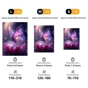 | Size:M(A4) | Approx 20×20 cm (8×8 inches) – 160~200 pcs, assembly time 4-6 hours. |