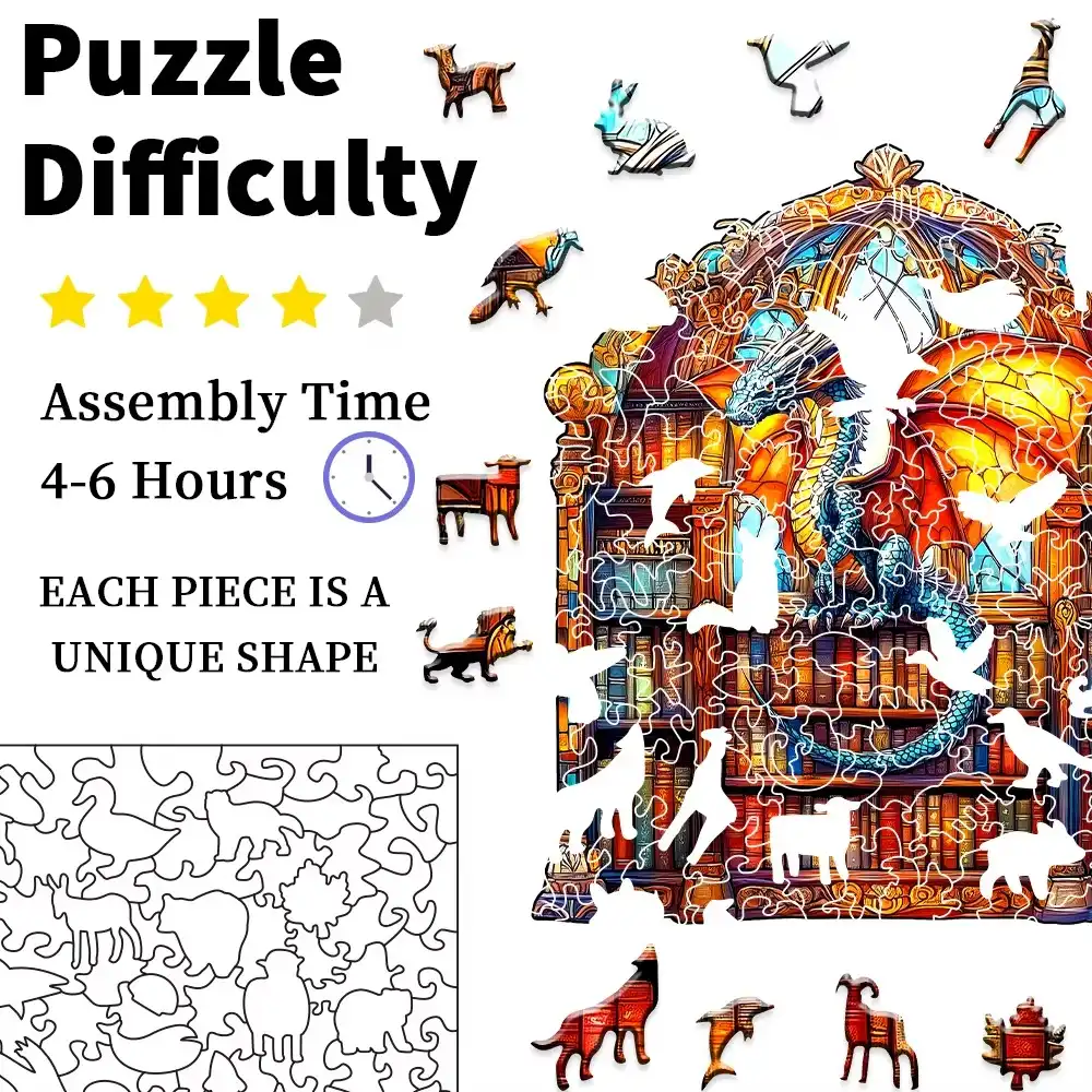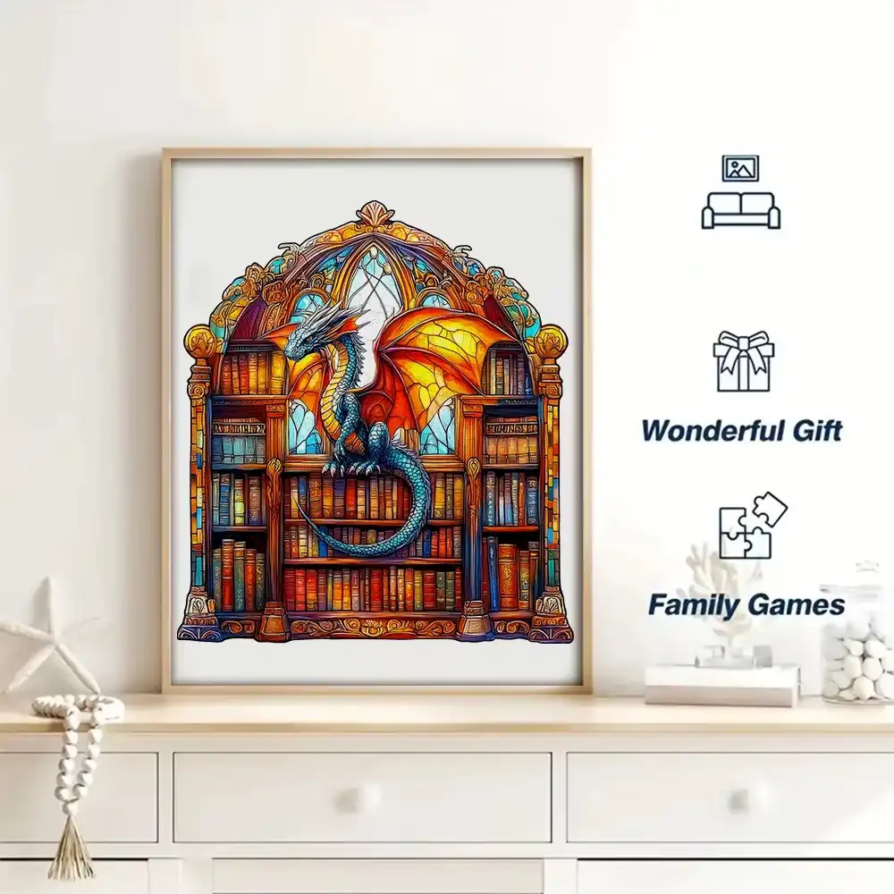 Magical Dragon And Library Wooden Jigsaw Puzzle