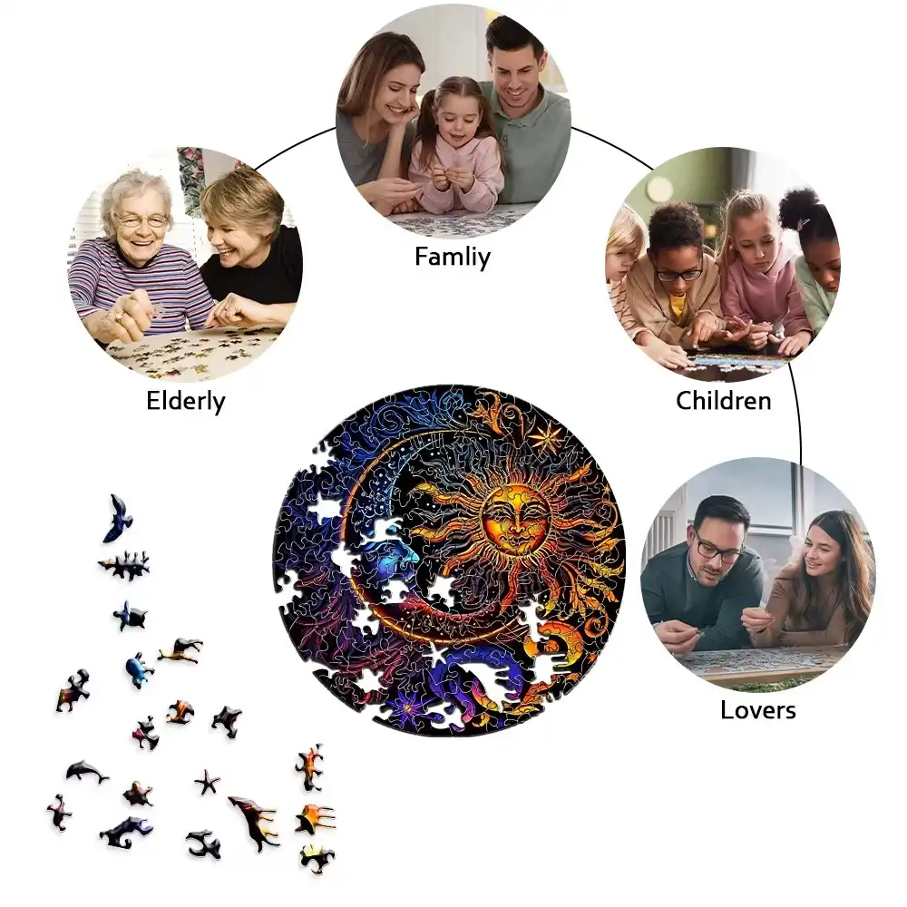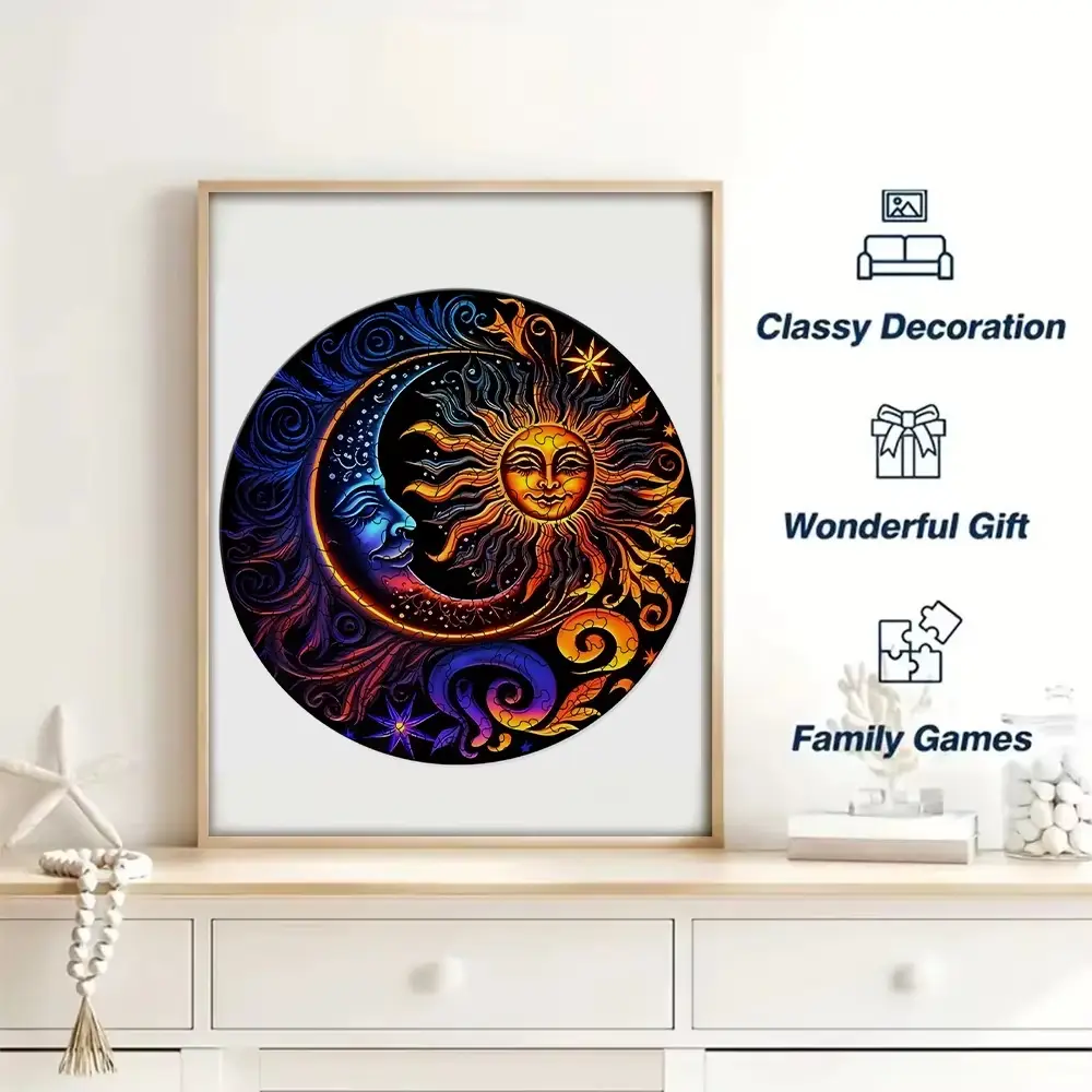 Moon And Sun Yin Yang Wooden Jigsaw Puzzle