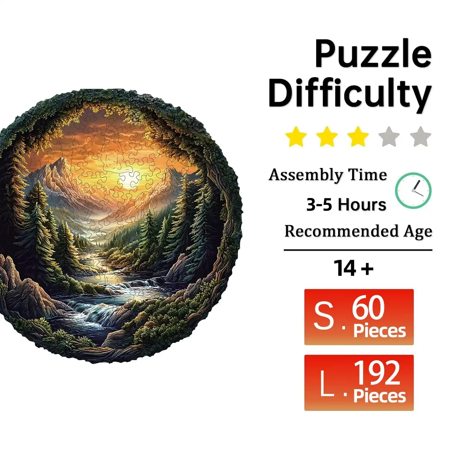 | Size:L(A3) | Approx 28×28 cm (11×11 inches) – 220~260 pcs, assembly time 6-8 hours. |
