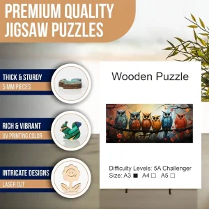 Discover the charm of family bonding with our Owl Family Wooden Jigsaw Puzzle! Crafted from high-quality, eco-friendly wood, this delightful puzzle features beautifully illustrated owls that will captivate both children and adults alike. With its sturdy pieces and engaging design, it promotes fine motor skills and problem-solving while providing hours of fun. Perfect for family game nights or as a thoughtful gift, this puzzle is not just a toy—it’s a cherished keepsake that brings loved ones together. Get ready to hoot with joy as you piece together this enchanting owl family!
