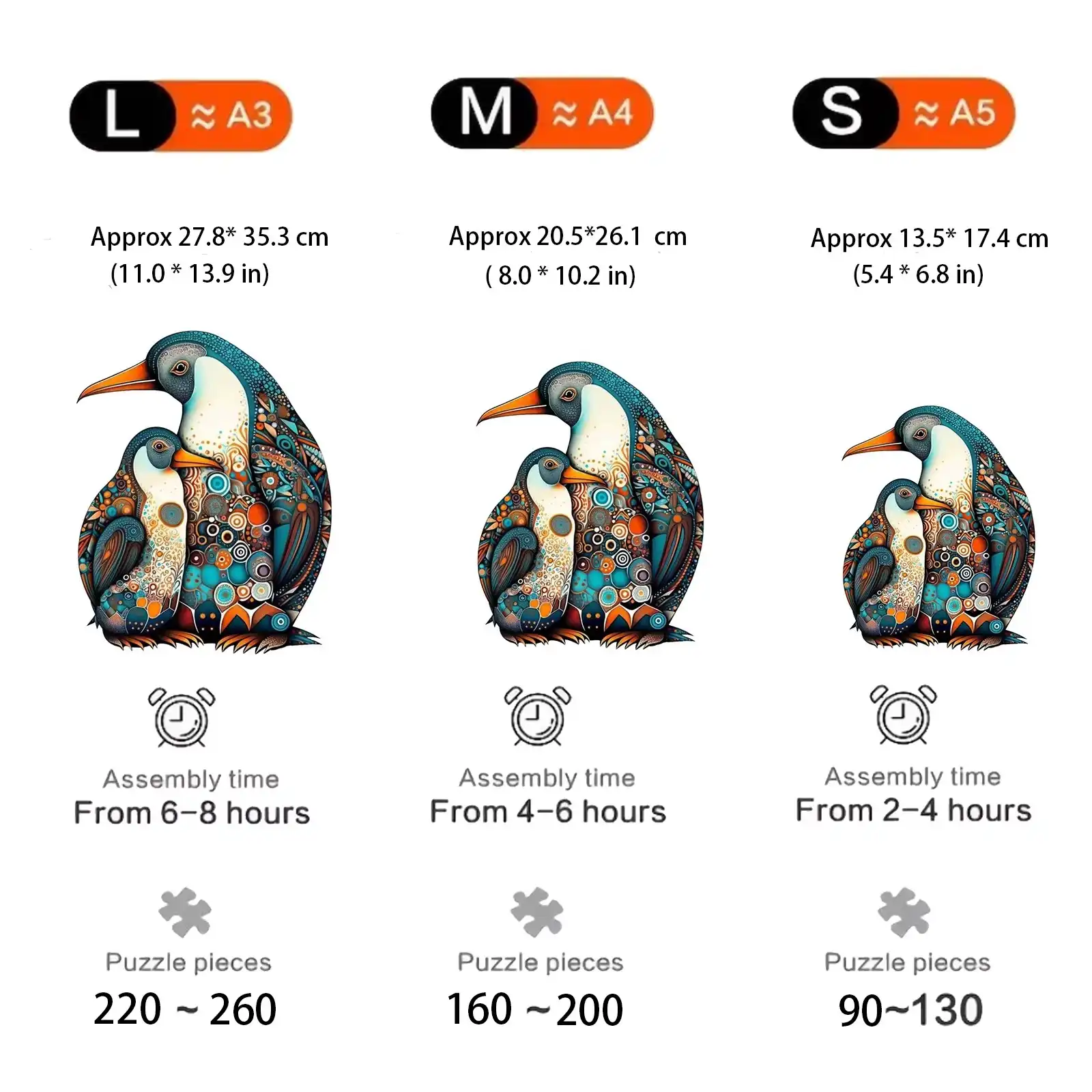 | Size:L(A3) | Approx 28×28 cm (11×11 inches) – 220~260 pcs, assembly time 6-8 hours. |