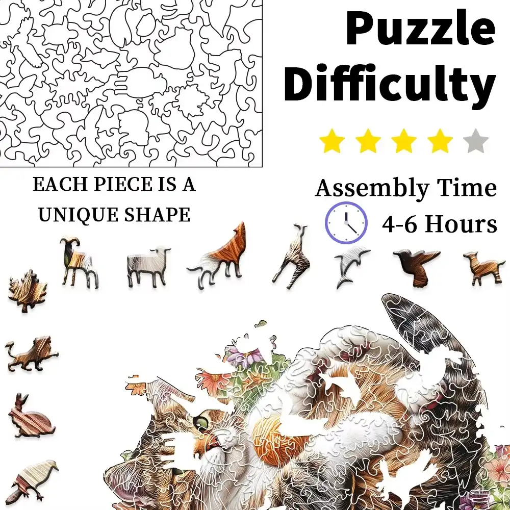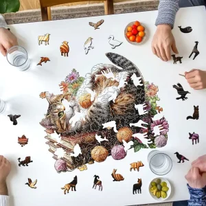 Playing Cat Wooden Jigsaw Puzzle