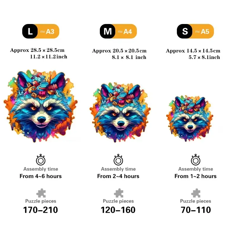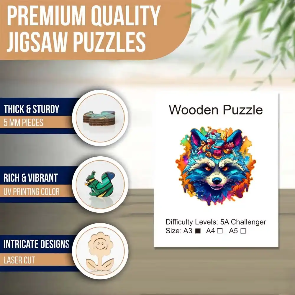 Discover the charm of our Raccoon Wooden Jigsaw Puzzle, featuring an enchanting design of a colorful raccoon. Crafted from high-quality wood, this puzzle not only offers a delightful challenge but also serves as a beautiful decorative piece for any room. Perfect for family bonding or a relaxing solo activity, it encourages creativity and problem-solving skills while providing hours of fun. Bring home this whimsical puzzle and let the adventure begin!