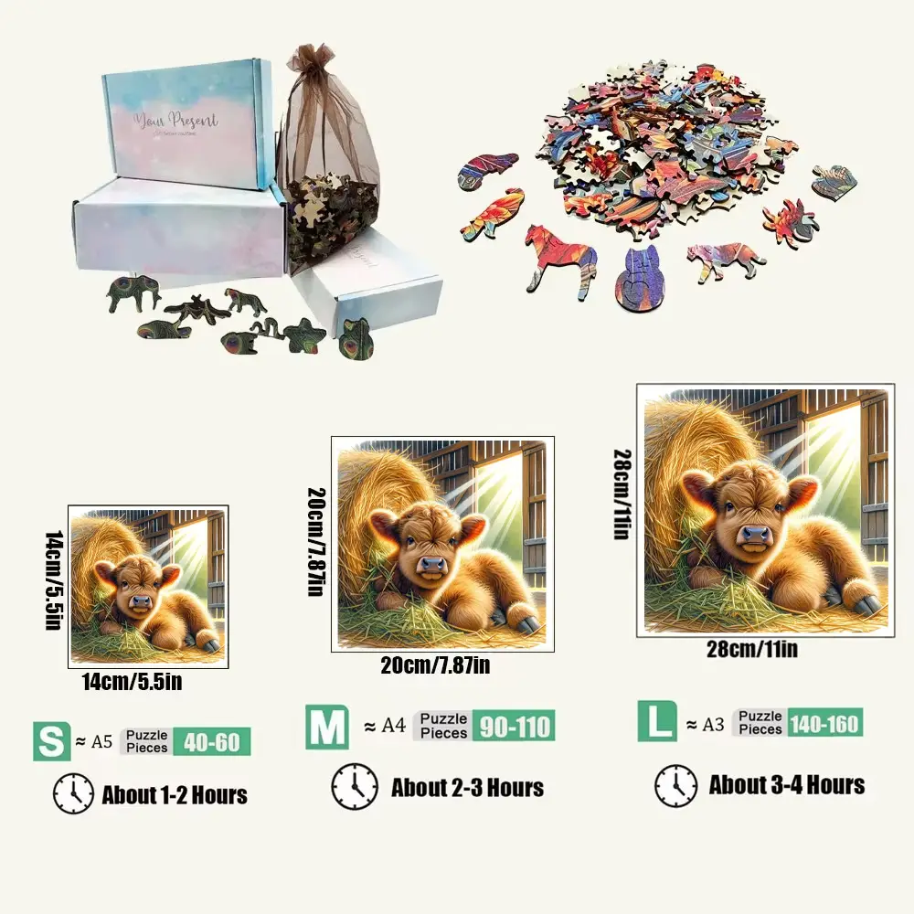 Discover the charm of the countryside with our Restful Calf Wooden Jigsaw Puzzle, featuring an adorable baby cow nestled in a cozy bed of hay. This beautifully crafted puzzle not only provides hours of engaging fun but also serves as a delightful piece of art for your home. Made from high-quality, eco-friendly wood, each piece fits perfectly, ensuring a satisfying assembly experience. Perfect for puzzle enthusiasts of all ages, this enchanting design will bring a touch of warmth and joy to your family game nights or serve as a thoughtful gift for animal lovers.