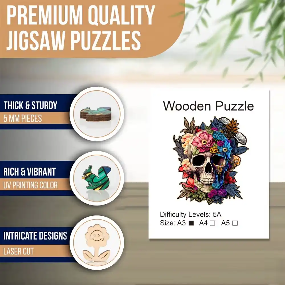 Discover the perfect blend of artistry and challenge with our Skull Art Wooden Jigsaw Puzzle Box. This intricately designed puzzle features a striking skull adorned with beautiful floral motifs, making it a unique addition to any collection. Crafted from high-quality wood, each piece fits together seamlessly, providing a satisfying tactile experience as you assemble this captivating artwork. Not only does it serve as an engaging pastime, but once completed, it transforms into a stunning decorative piece that sparks conversation. Elevate your puzzle game and bring home this exquisite Skull Art Wooden Jigsaw Puzzle Box today!