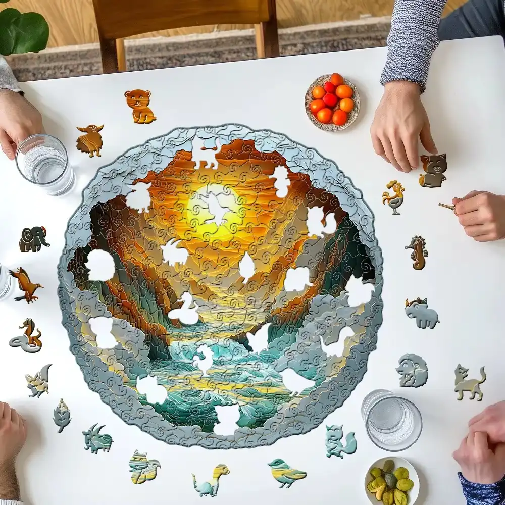Sun in The Mountains Wooden Jigsaw Puzzle