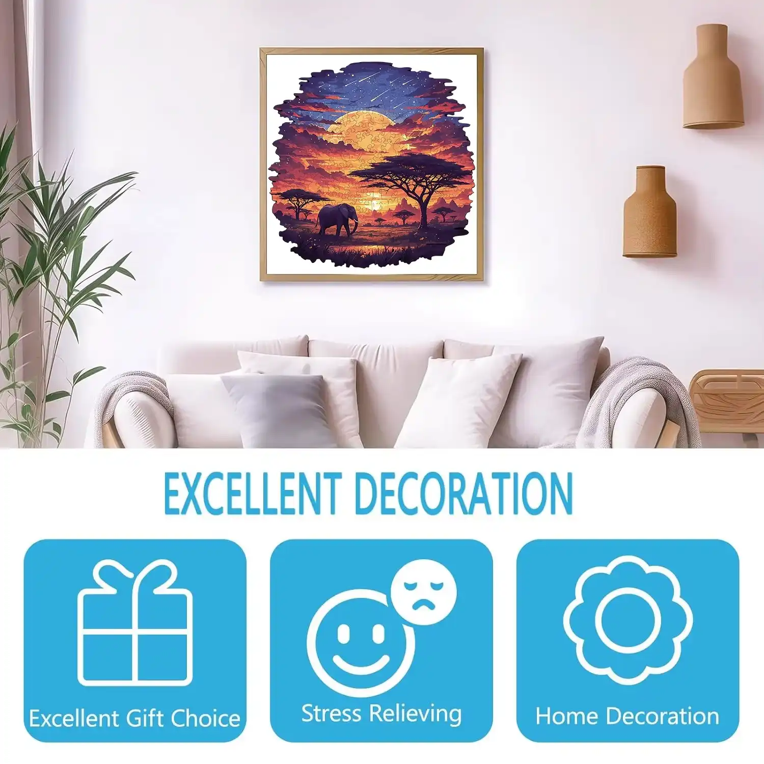 Sunset On The Grassland Wooden Jigsaw Puzzle