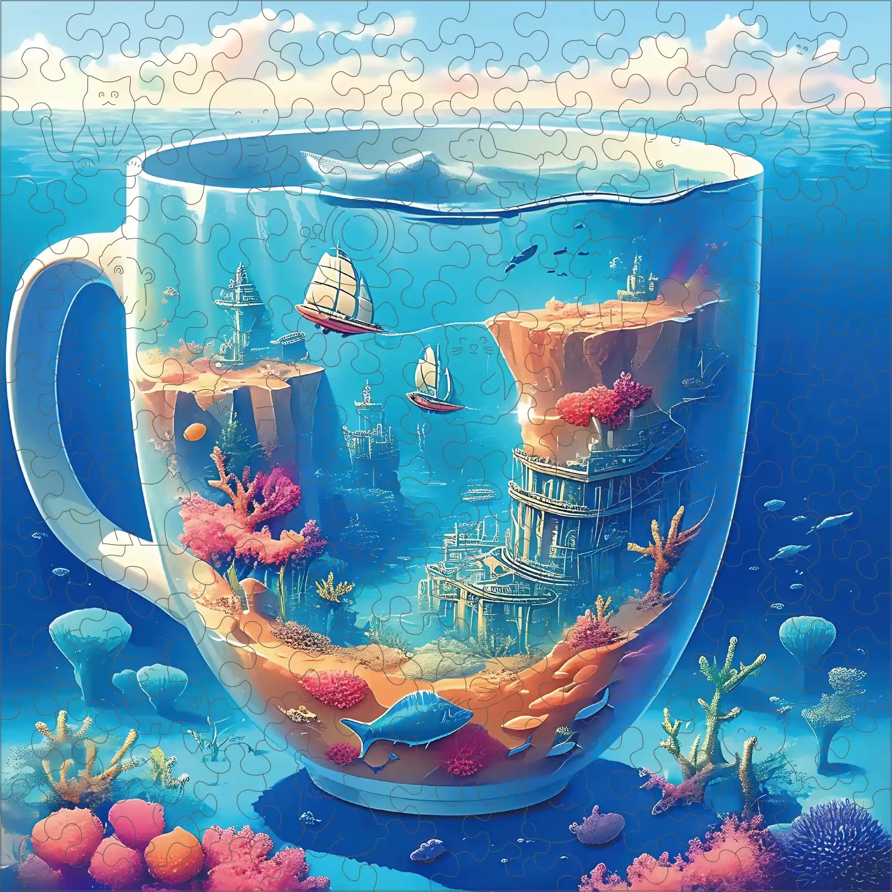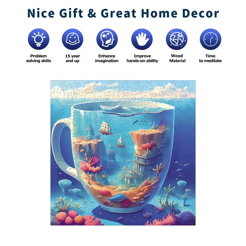 Underwater World In The Cup Wooden Jigsaw Puzzle