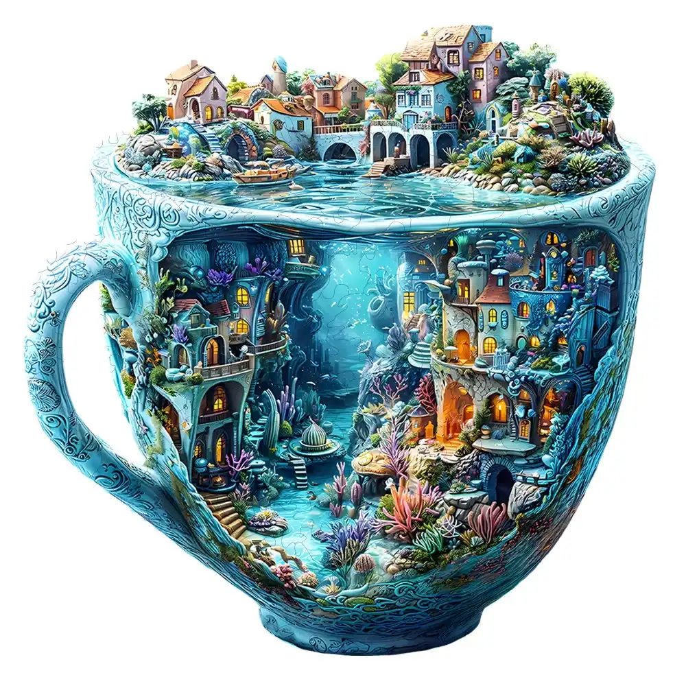 Village In Tea Cup Wooden Jigsaw Puzzle