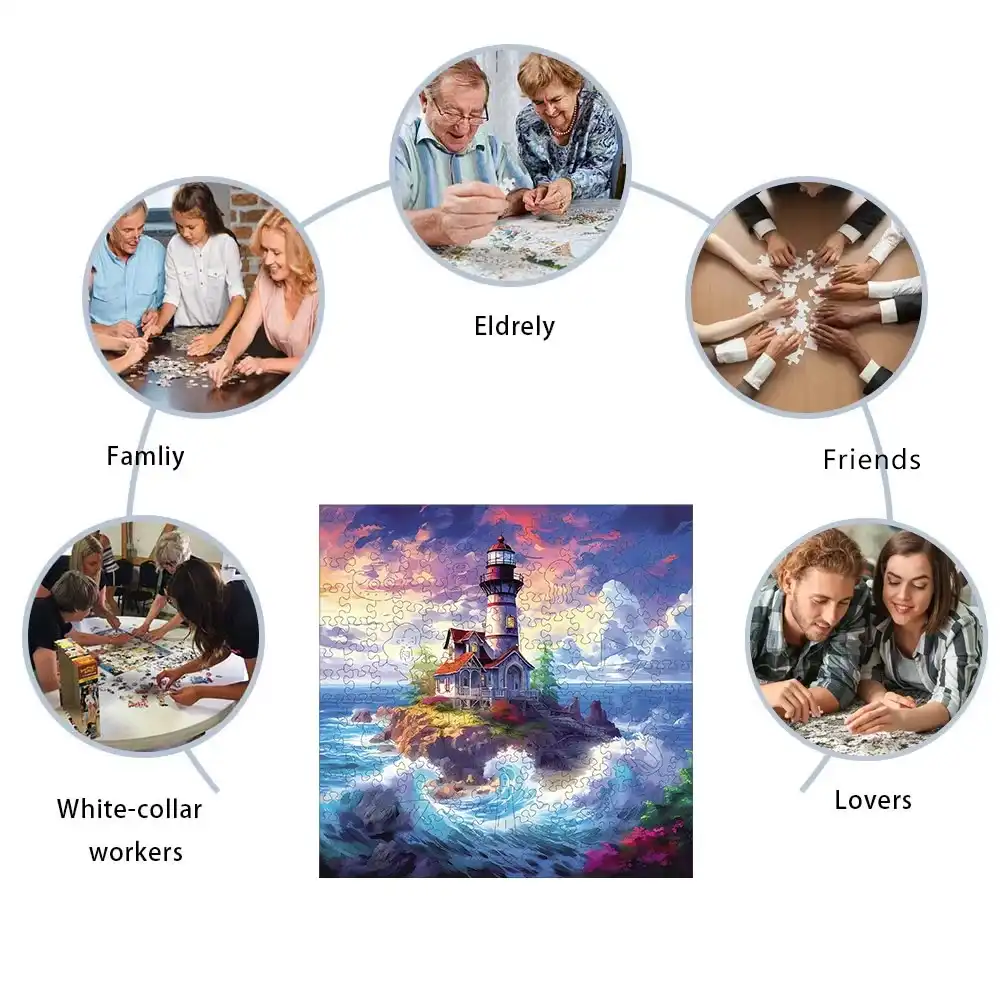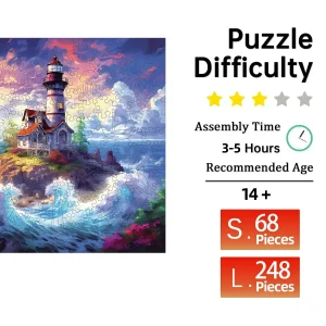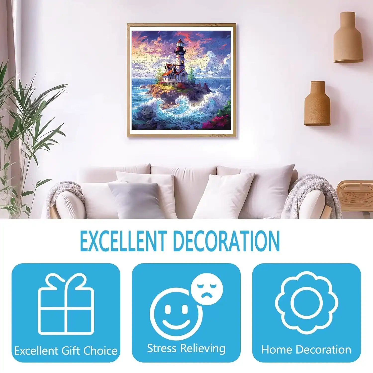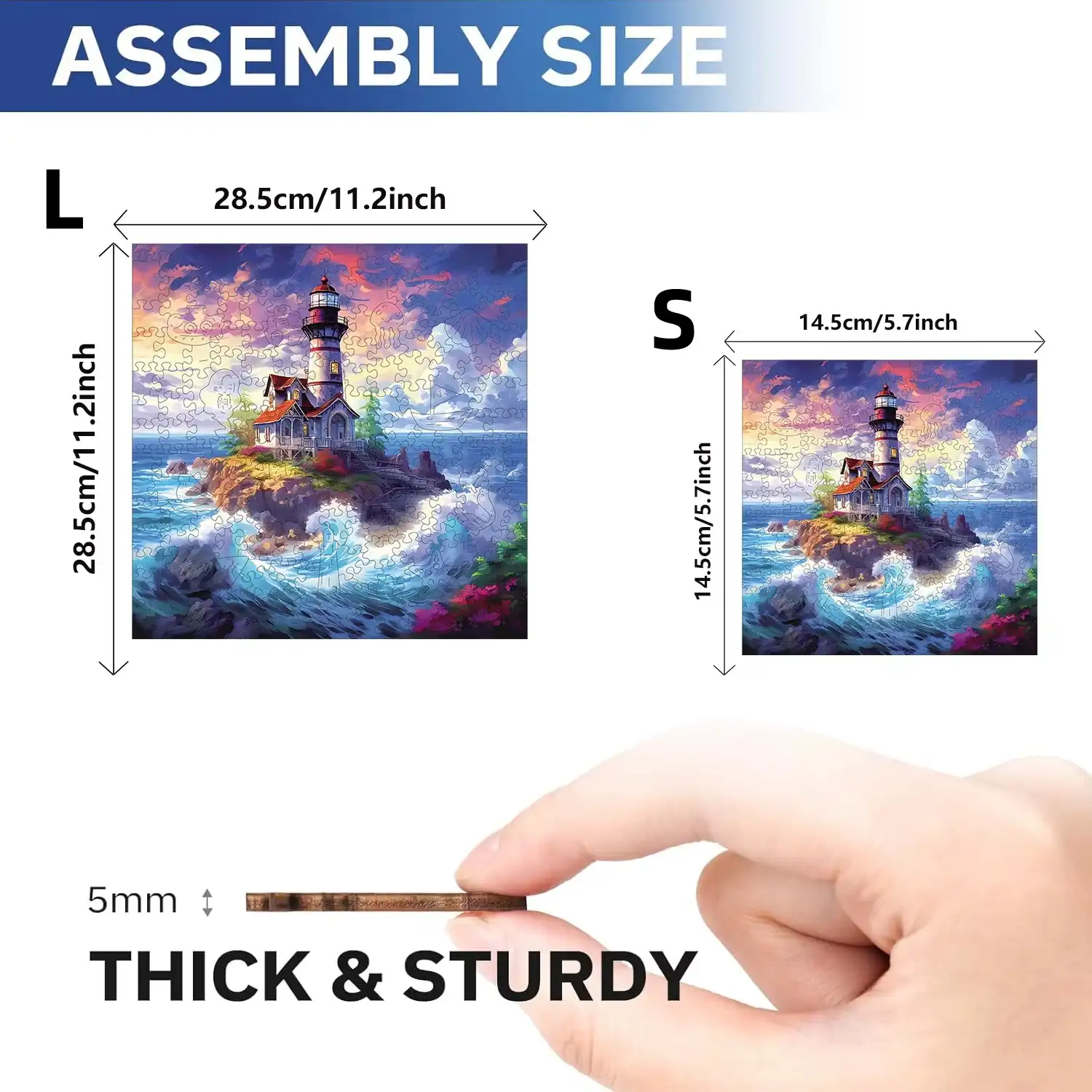 Waves And Lighthouse Wooden Jigsaw Puzzle